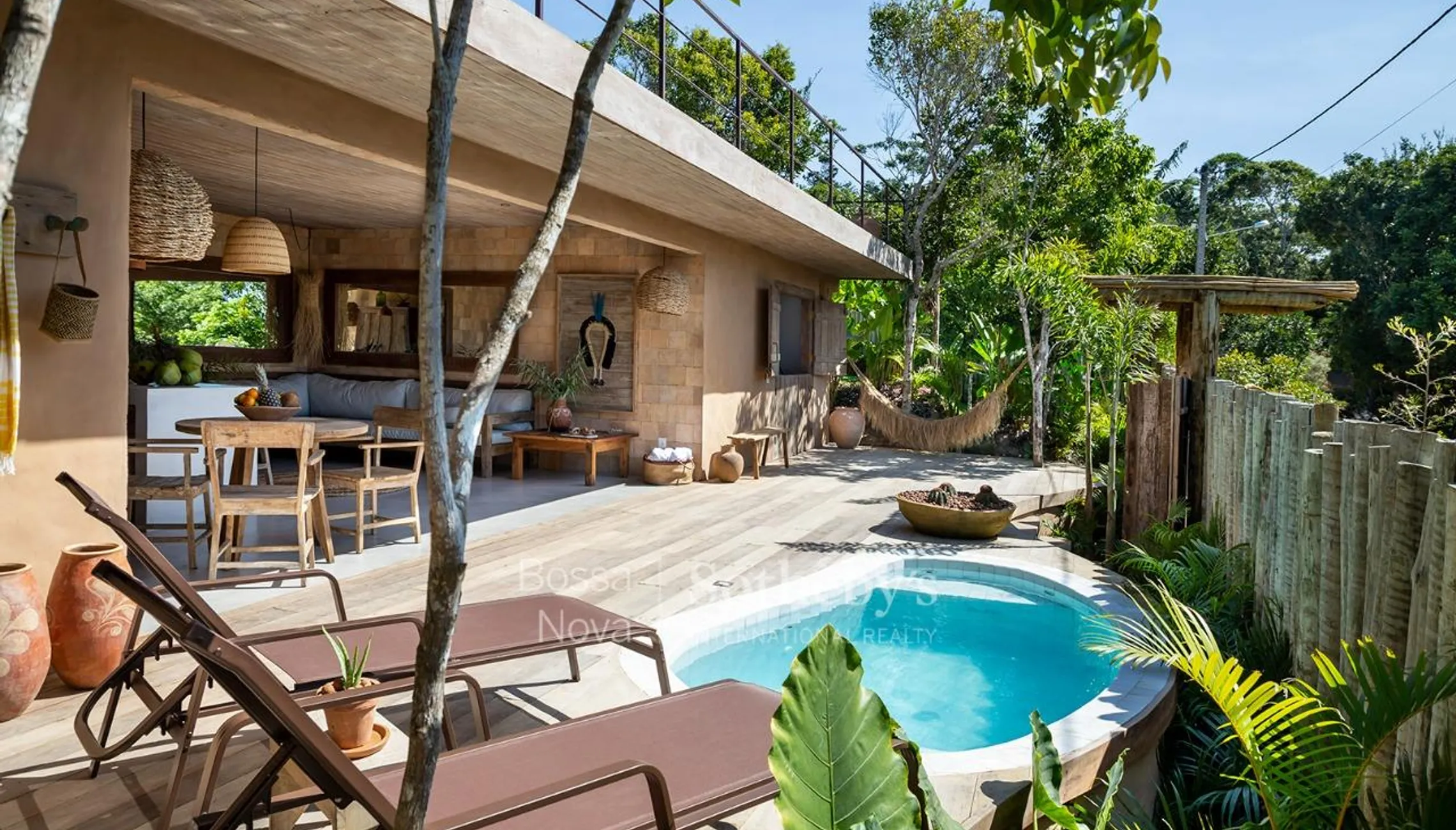 Casa em terreno de aproximadamente 1.400 m², com área construída de cerca de 500 m² e vista para o vale. Possui deck integrado ao jardim e projeto de interiores que valoriza o conforto, com peças de design brasileiro e local. A planta contempla cinco suítes, sendo a principal com cama king-size, closet, varanda, banheira e ar-condicionado. As demais suítes oferecem varanda ou closet, ar-condicionado e banheiros bem dimensionados. A área social integra estar, jantar e espaços voltados para a vista, proporcionando conexão com o entorno.