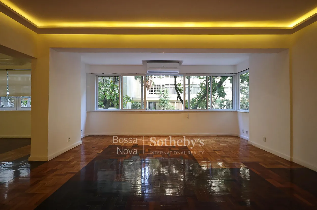 Localizado à beira-mar, este apartamento está em um edifício em estilo Art Déco projetado por Freire e Sodré, cuja arquitetura foi inspirada nos grandes transatlânticos da época. Reformado, conta com acabamentos de qualidade, peças de arte brasileiras e cabeamento digital para automação. A área social reúne living para três ambientes com ar-condicionado split, piso em marchetaria e lavabo. Na área íntima, são quatro suítes, sendo uma reversível, todas com armários. A cozinha é acompanhada de copa, despensa e dependência ampla, atualmente convertida em um anexo funcional. O imóvel possui ainda quarto de manutenção e uma vaga de garagem na escritura. O edifício oferece portaria 24 horas.
