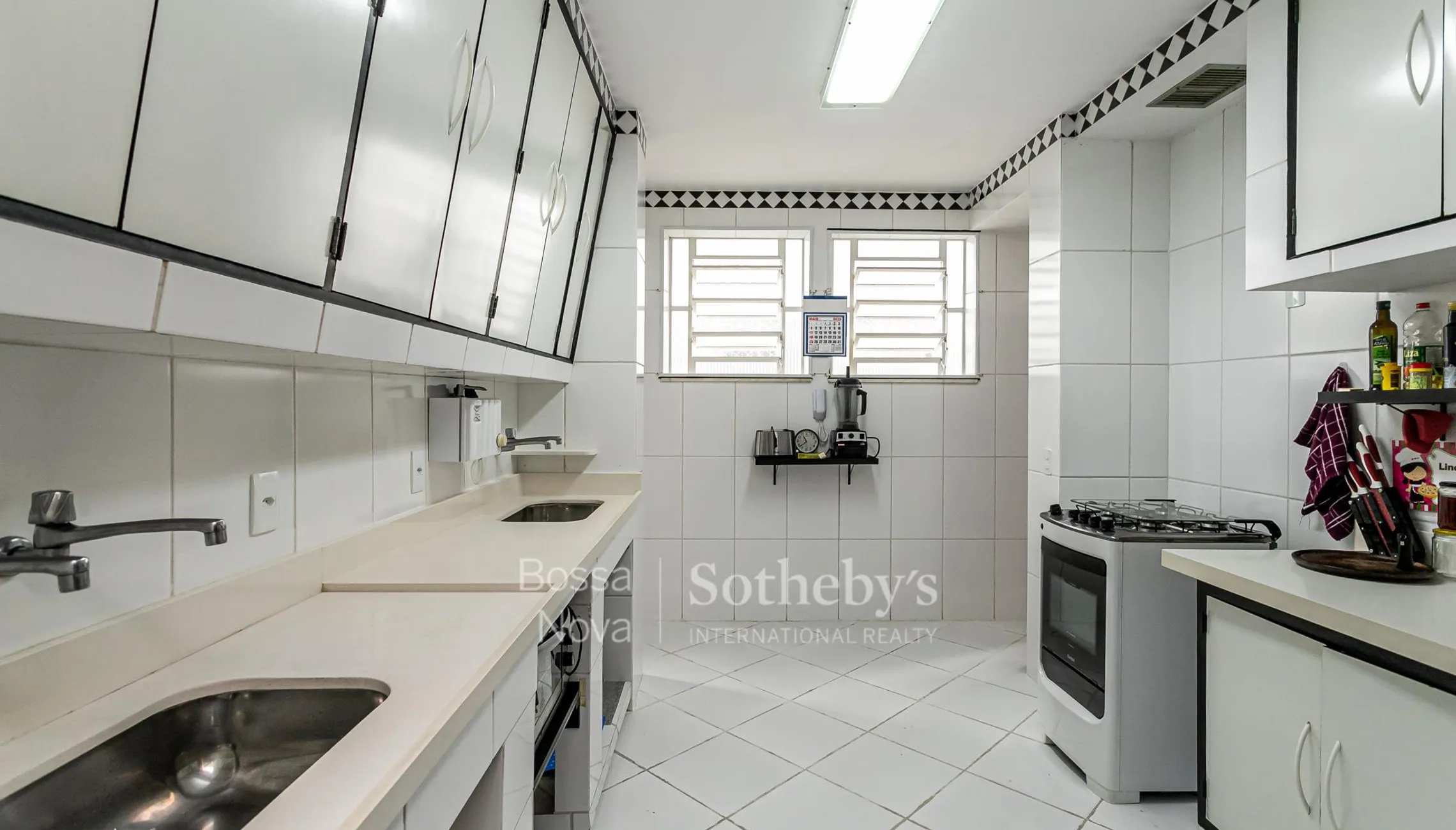 Apartamento de frente para o mar, localizado entre as praias de Copacabana e do Arpoador, próximo ao Shopping Cassino Atlântico. A área social conta com living para dois ambientes integrado à varanda interna com vista plena para o oceano. A planta dispõe de sala de estar, dormitórios com armários, dois banheiros sociais, cozinha, lavanderia e dependência completa para funcionária. O imóvel possui uma vaga de garagem registrada na escritura e bicicletário no edifício. Necessita de atualização, com potencial para adequação a diferentes estilos de projeto.