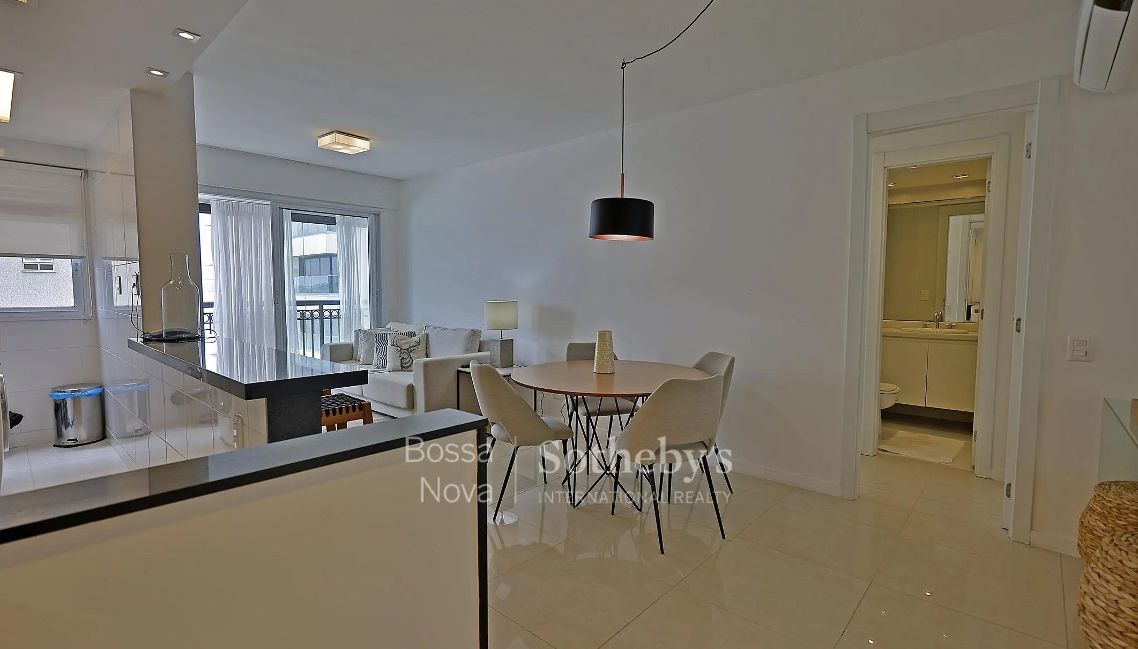 Localizado no Clube Wave, este apartamento oferece living para dois ambientes com varanda voltada para o mar, uma suíte e cozinha planejada equipada com forno e lava-louças embutidos. A unidade conta com uma vaga de garagem na escritura. O edifício dispõe de áreas comuns como piscina, spa com ofurô, sauna, sala de leitura e reunião, espaço fitness, rooftop lounge, varanda social e espaço para yoga. A portaria e os sistemas de acesso proporcionam segurança aos moradores.