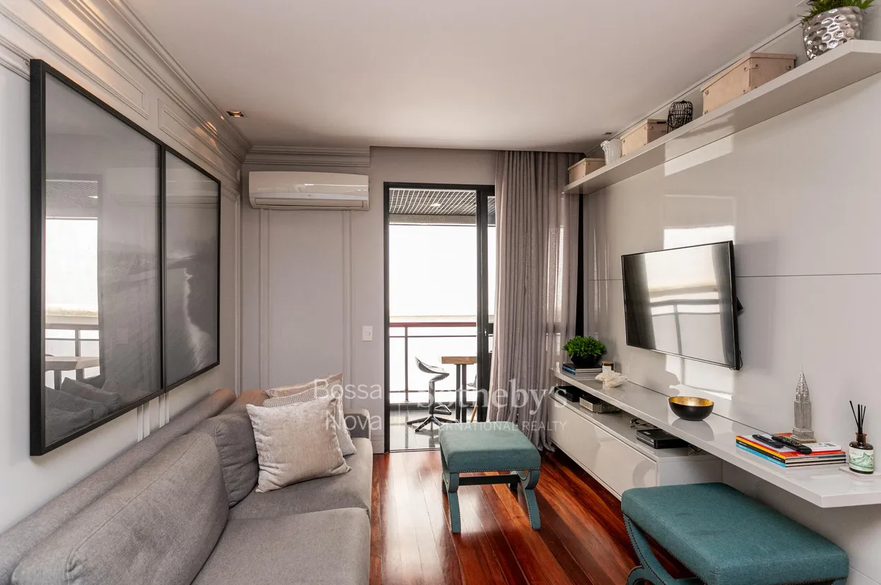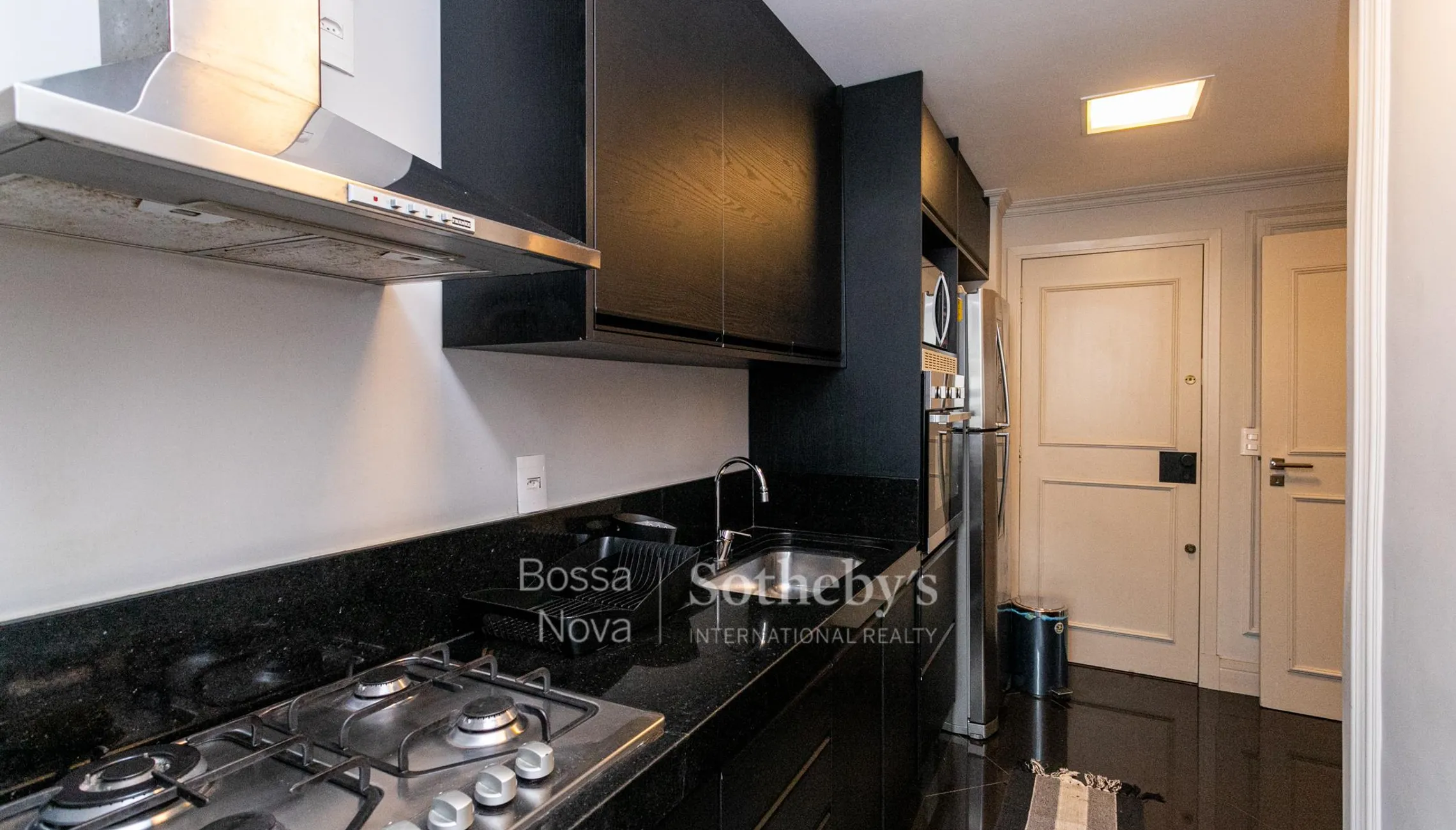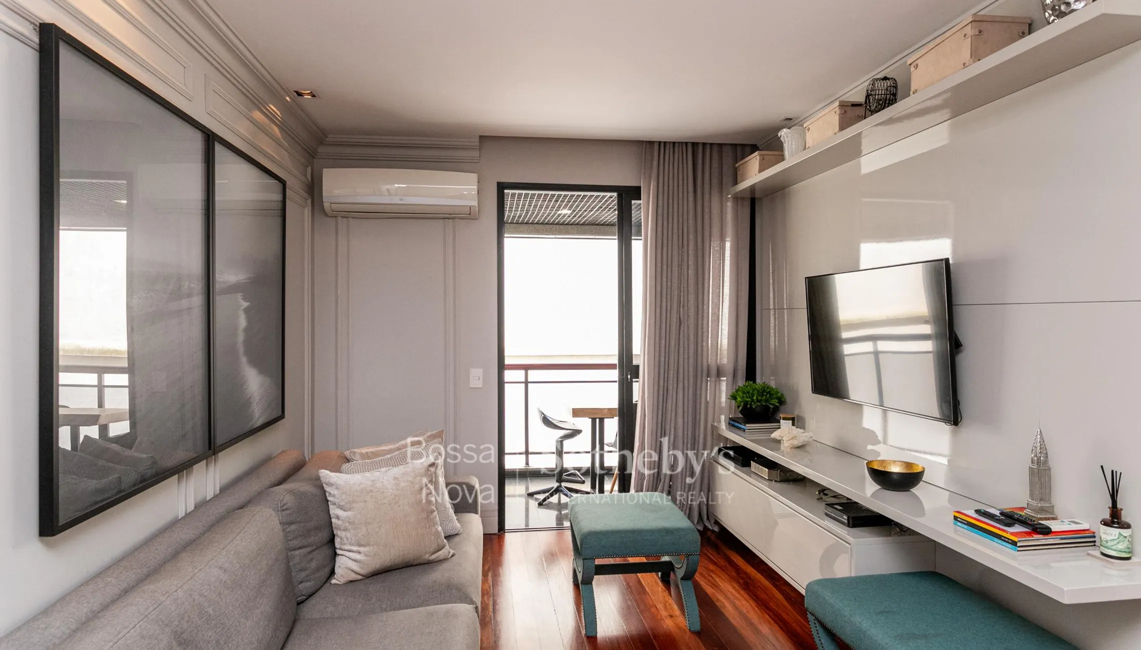 Apartamento silencioso e totalmente mobiliado situado em zona residencial com acesso fácil a serviços, praia e conveniências. A planta dispõe de varanda com mesa para refeições, sala, três quartos sendo um reversível e uma suíte, além de banheiro social. A cozinha conta com marcenaria planejada e eletrodomésticos, acompanhada de área de serviço com entrada independente. Há armários em todos os ambientes e piso em tábua de madeira. A unidade oferece uma vaga de garagem e o prédio possui monitoramento, elevadores social e de serviço e portaria vinte e quatro horas.