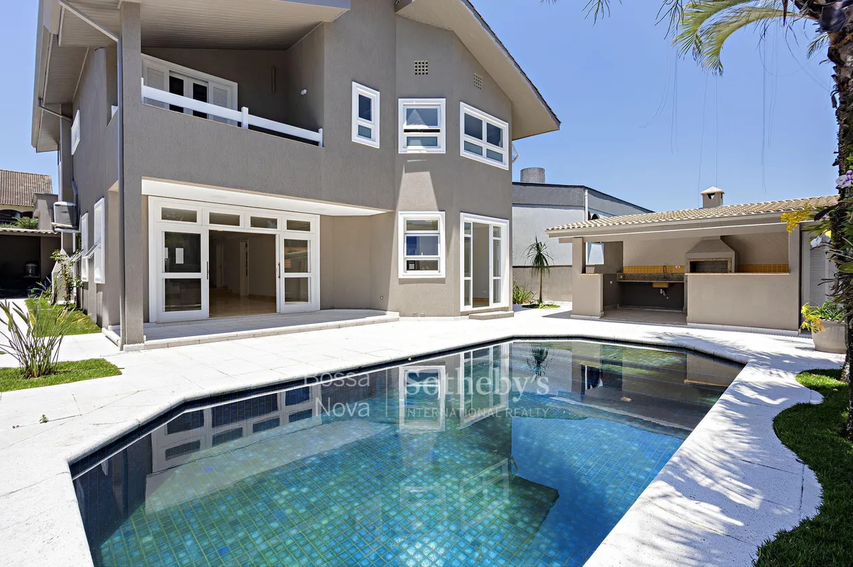 Casa reformada com livings amplos e integrados que proporcionam fluidez aos ambientes. Conta com armários planejados em todos os espaços e cozinha funcional com marcenaria de qualidade. A área de lazer, voltada para posição bem ensolarada, oferece espaço gourmet e solarium generoso, favorecendo momentos de convivência. Os acabamentos incluem pisos em mármore e madeira, que reforçam a elegância da propriedade.
