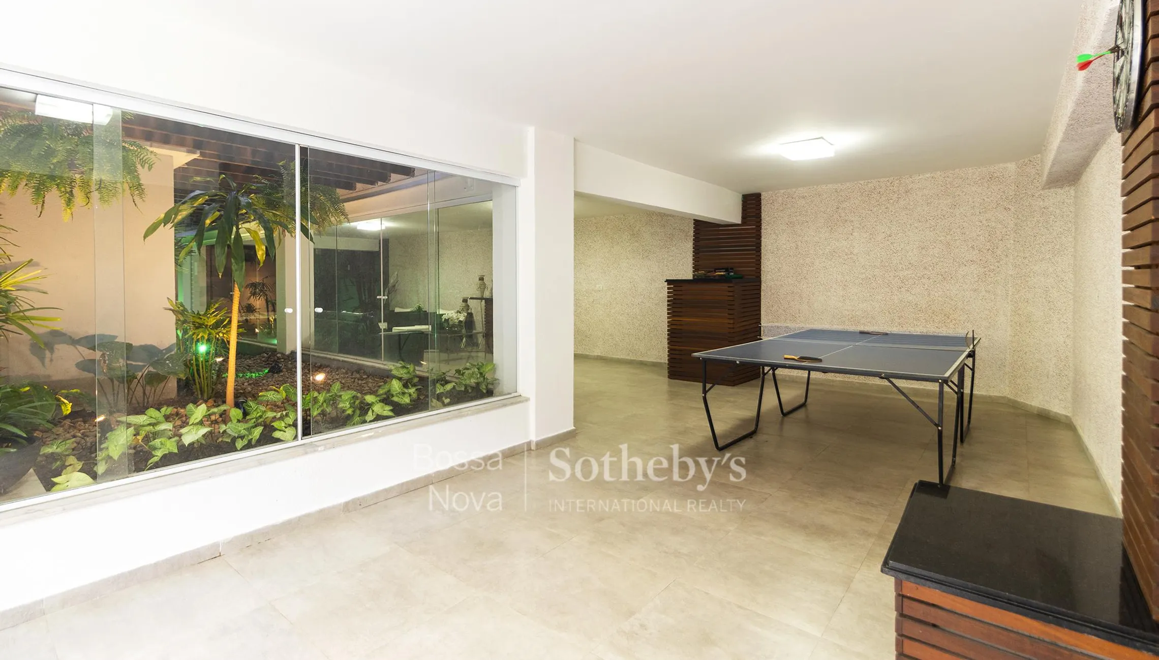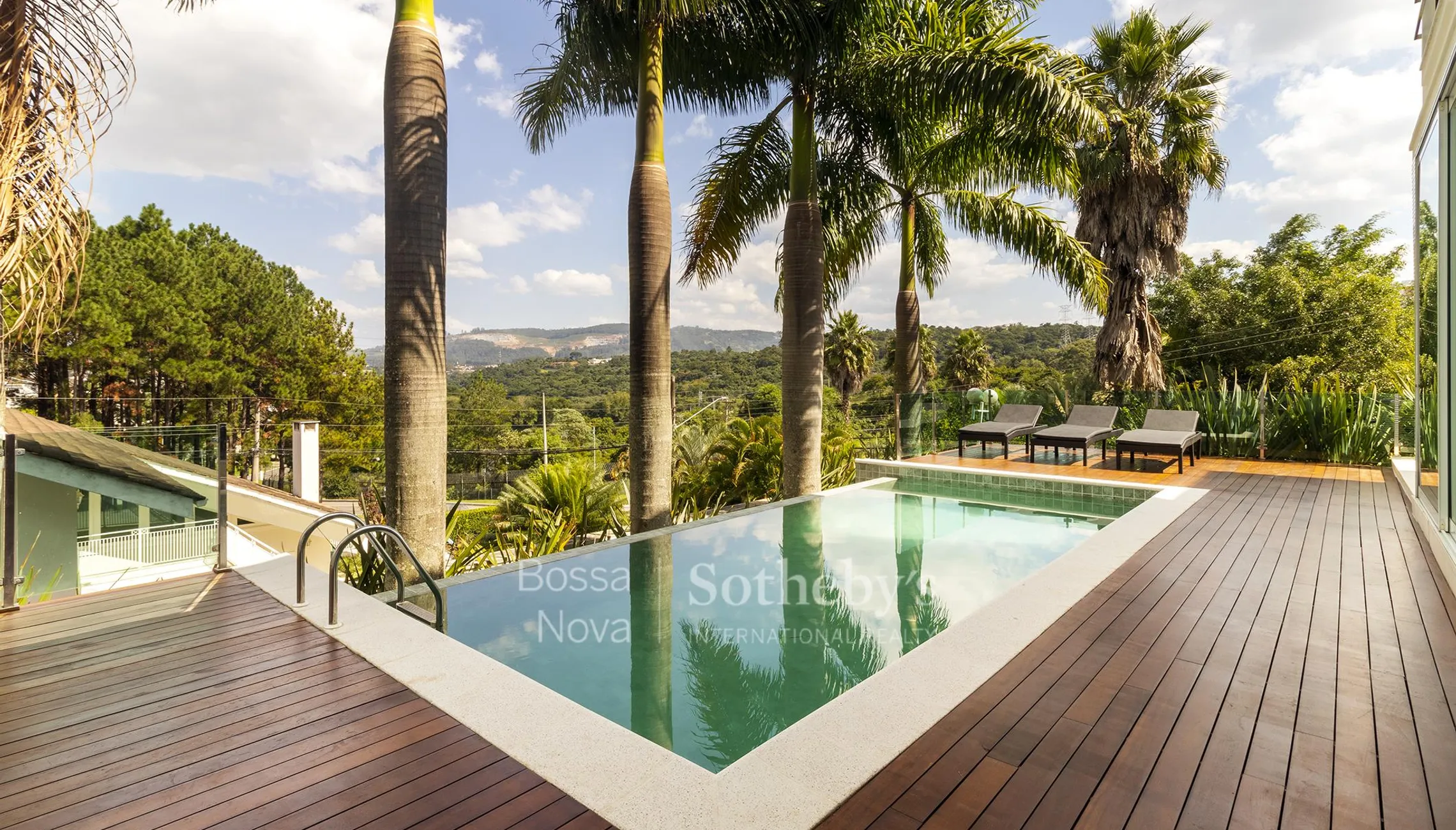 Residência de esquina com projeto paisagístico ao redor e excelente incidência de luz natural. O projeto arquitetônico valoriza o pé-direito alto, com pisos em mármore nas áreas sociais e janelões voltados para a área de lazer. Os ambientes são amplos e incluem home theater individualizado. No pavimento superior, há uma sala íntima aconchegante e a suíte master, espaçosa, com área para saleta e vista permanente para as árvores. A área de lazer contempla varanda gourmet, sala de estar, piscina com deck e spa com jacuzzi e deck interno.