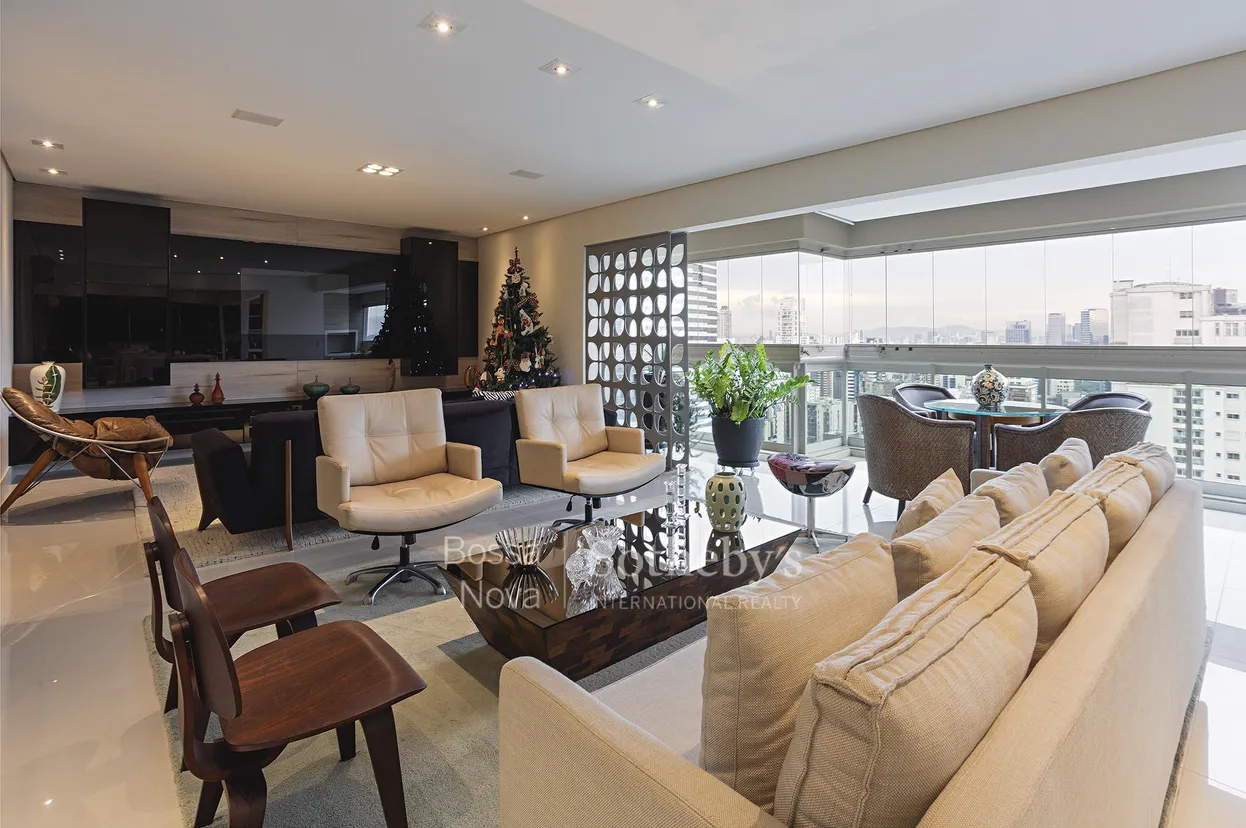 Localizado no Brooklin, este apartamento mobiliado oferece living amplo para dois ambientes, varanda integrada equipada, sala de jantar, home office e lavabo, além de ar-condicionado. A área íntima dispõe de três suítes, sendo a principal com closet e terraço. O imóvel conta com quatro vagas de garagem. O condomínio oferece diversas opções de lazer, como piscina, quadra, brinquedoteca e academia, compondo uma estrutura adequada para diferentes rotinas.
