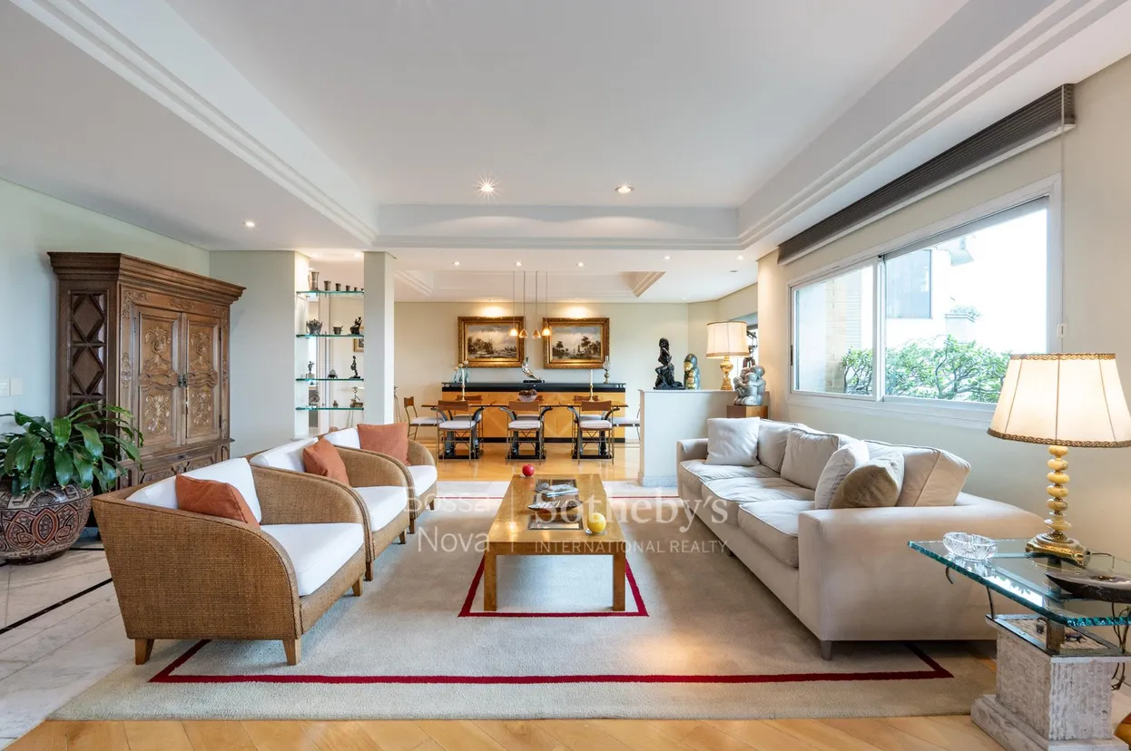 Localizado na quadra mais valorizada de uma rua cobiçada no bairro Ibirapuera, este apartamento oferece vista livre para o Parque Ibirapuera e para o skyline da cidade. Com projeto assinado e decoração elegante, os ambientes amplos apresentam acabamentos refinados e integração entre as áreas sociais, que incluem living para vários ambientes, salas de jantar e almoço. A área íntima conta com três suítes espaçosas, todas com closet, banheiros Sr. e Sra. e terraço privativo. O condomínio dispõe de infraestrutura completa de lazer e segurança diferenciada, em um endereço exclusivo da cidade.