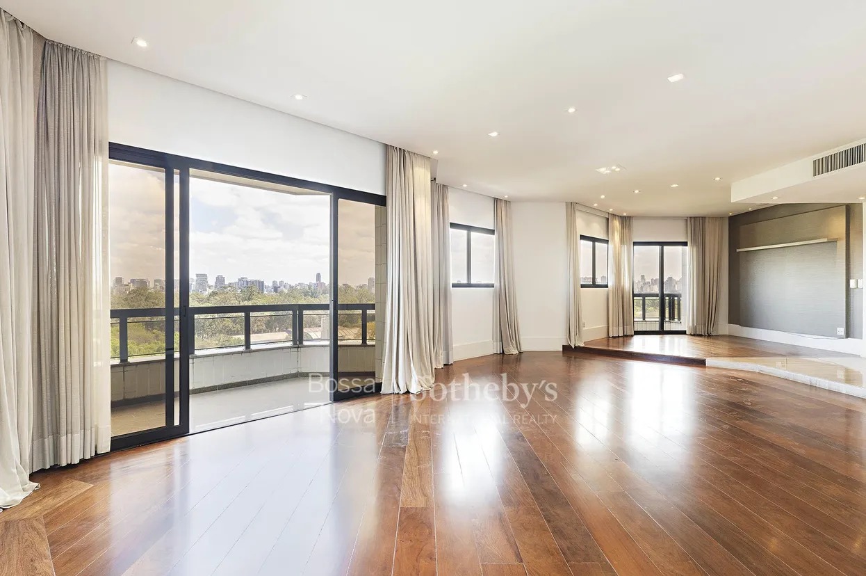 Localizado na área valorizada do Paraíso, este apartamento oferece vista ampla para o Parque Ibirapuera e reúne sofisticação em cada detalhe. Com quatro suítes equipadas com armários, a suíte master dispõe de walk-in closet iluminado e planejado, além de varanda com vista privilegiada. A área social conta com cinco salas que permitem diferentes ambientações, lareira e janelas generosas que favorecem a ventilação e a luminosidade natural, além de cozinha equipada, despensa, dependências e área de serviço funcional. O edifício possui jardim bem cuidado, piscina, quadra de tênis, academia, sauna, sala de descanso e playground, proporcionando completa infraestrutura de lazer e bem-estar.