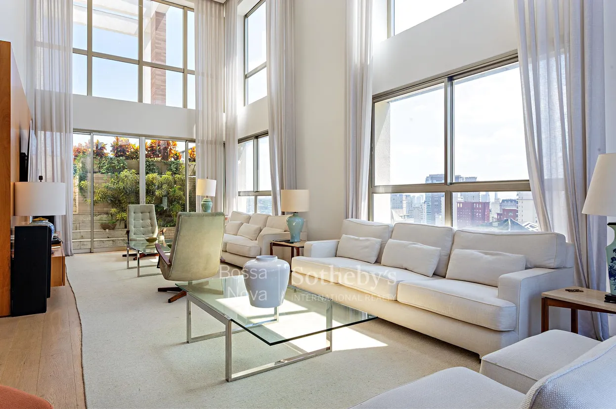 Cobertura localizada no Itaim Bibi, entre a Avenida Faria Lima e o Parque do Povo, em região com ampla oferta de serviços, restaurantes e fácil acesso às principais vias do bairro. O imóvel apresenta planta bem distribuída e área social com living amplo e pé-direito duplo, lareira e integração com o terraço, que conta com jacuzzi e espaço com churrasqueira, proporcionando diferentes ambientes de convivência. A cozinha é espaçosa, com despensa, além de área de serviço com dependência para funcionários. O imóvel dispõe ainda de adega e conta com dois elevadores sociais. A área íntima é composta por três suítes e home theater. O condomínio oferece estrutura de lazer com piscina com raia, academia equipada, jardim, quadra poliesportiva, playground, brinquedoteca e salas de massagem, com destaque para a quadra de tênis coberta. O imóvel dispõe de seis vagas de garagem, depósito e vagas para visitantes.