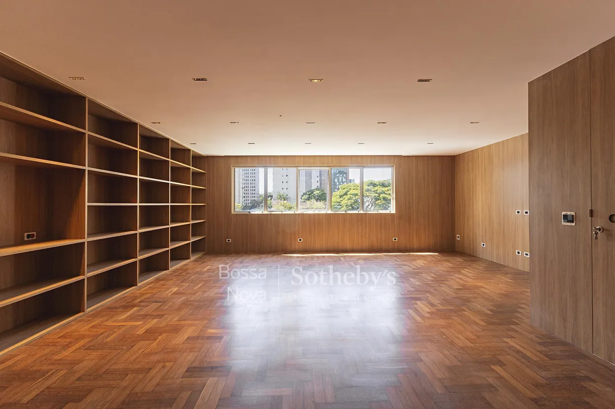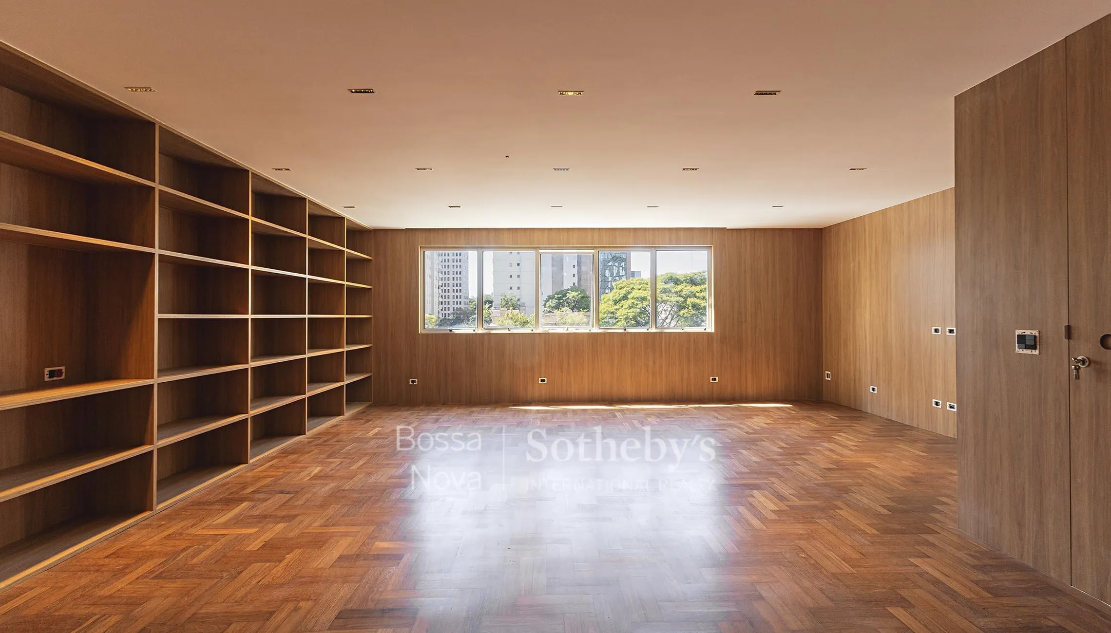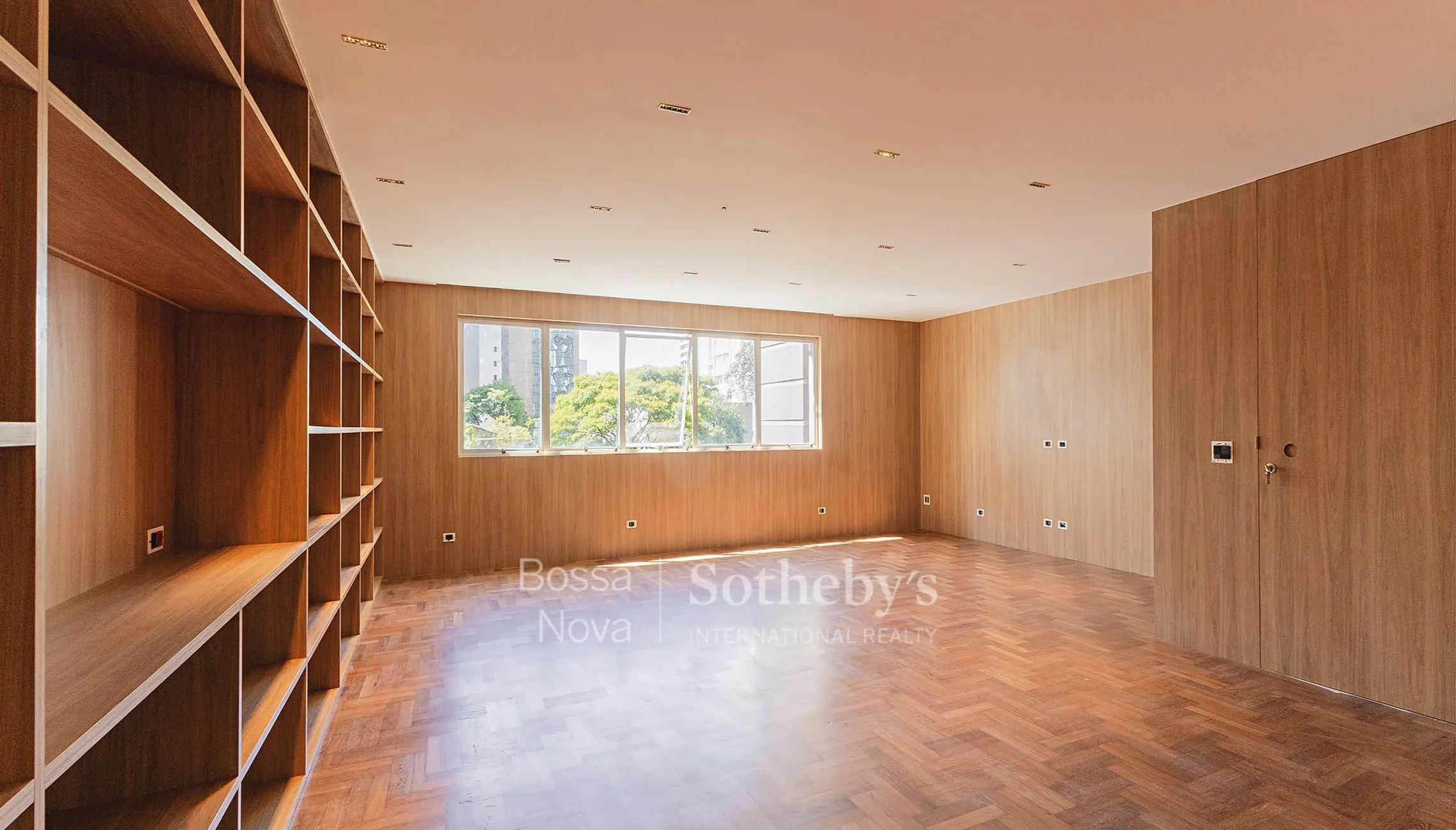 Reformado e modernizado. Pronto para morar. Prédio contemporâneo e atemporal, projeto do arquiteto Ruy Otake, em excelente localização, com jardim e recuo frontal. Apartamento totalmente reformado e modernizado com hall de entrada revestido com placas de madeira e piso em mármore. Apartamento possui uma incrível insolação natural com janelas em toda extensão da sala e com vista para o Jardim Europa. O living e todo revestido por painéis de madeira e decorado com uma estante em uma das paredes e é integrado a cozinha aberta com ilha e totalmente equipada. Na parte íntima são 3 dormitórios, sendo 1 suíte com closet e todas as paredes forradas com painéis de madeira e todos os banheiros com acabamentos mármore, o 3º dormitório está sem armários podendo ser usado como escritório. O imovel ainda possui uma excelente rouparia com armário de 6 portas e lavabo. Área de serviço com lavanderia espaçosa, possui banheiro de funcionário e um espaço que pode ser um dormitório, ou despensa/depósito. Todos os ambientes com tacos em Sucupira (madeira nobre), com ar condicionado, projeto de iluminação, esquadrias recuperadas e armários planejados com iluminação interna de excelente qualidade. Portaria blindada e 24h presencial. Uma vaga fixa. Prédio com gerador e pequena sala de ginástica, um elegante hall de entrada e espaço externo com solarium. Aquecimento caldeira do prédio.