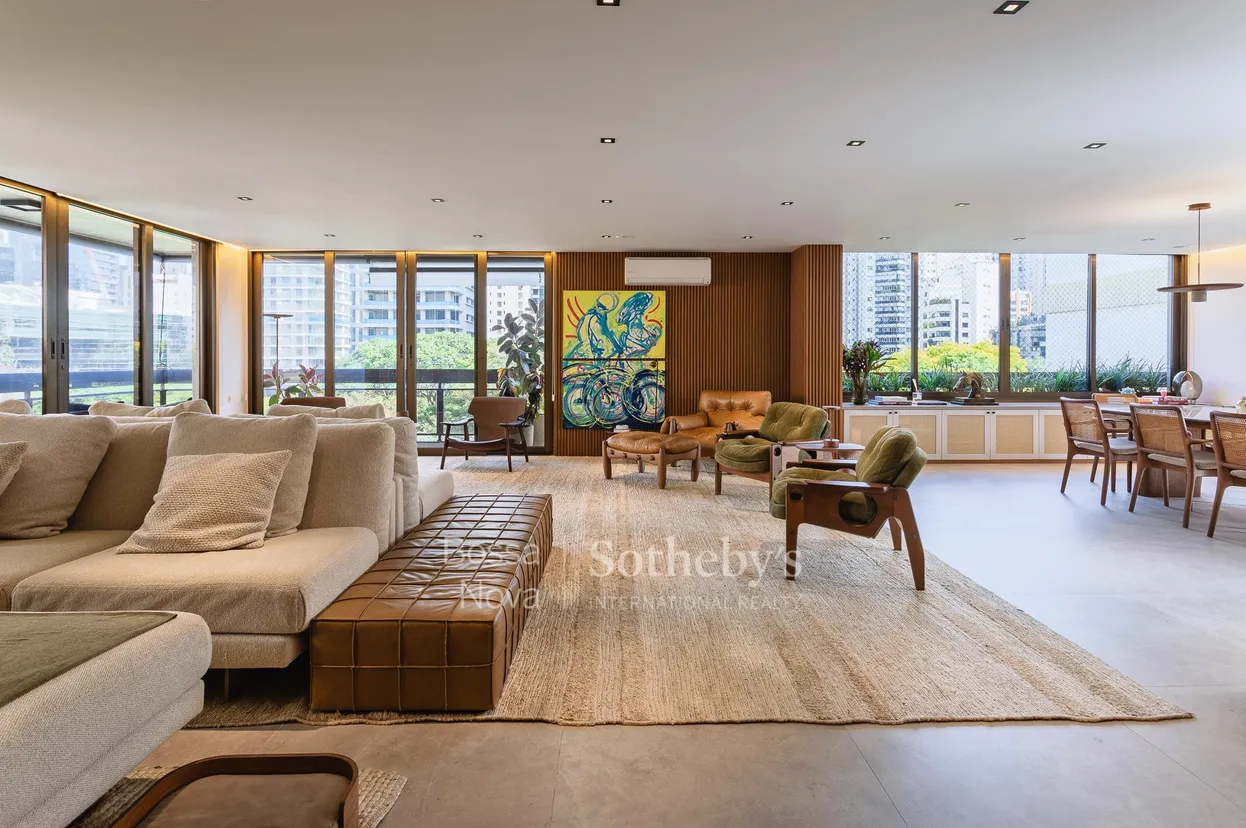 Este apartamento passou por reforma recente e está localizado em edifício residencial em região consolidada, com fácil acesso ao Parque do Povo e aos principais eixos da cidade. A área social apresenta living amplo organizado em três ambientes, com varanda contínua que contorna o apartamento e favorece a entrada de luz natural, além de portas de correr envidraçadas do piso ao teto e lavabo. O imóvel conta com sistema de ar-condicionado em todos os ambientes. Na área íntima, dispõe de três suítes bem distribuídas, com destaque para a suíte principal, que oferece closet, terraço e banheiro com dimensões generosas. A cozinha é equipada com eletrodomésticos e marcenaria planejada, com abundância de armários. A área de serviço é bem iluminada e ventilada, com banheiro de apoio e dormitório atualmente utilizado como escritório, com possibilidade de reversão. O edifício oferece piscina, academia e playground, além de portaria presencial vinte e quatro horas. O apartamento conta com quatro vagas de garagem e vagas destinadas a visitantes.
