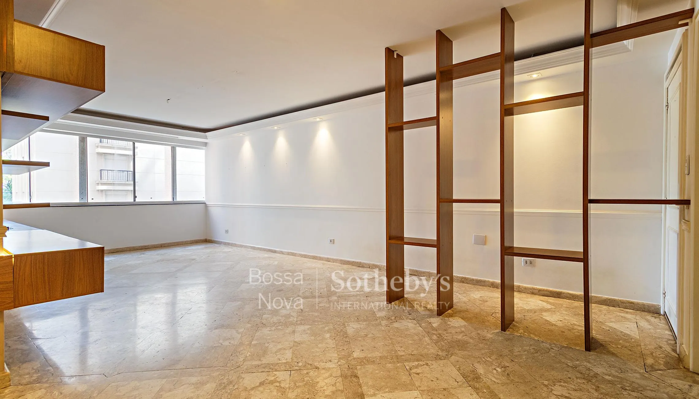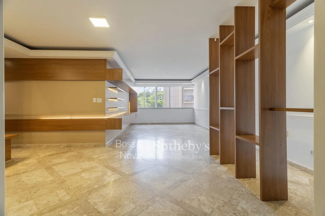 Situado em edifício bem localizado no Jardim América, este apartamento apresenta acabamentos de qualidade, como piso de mármore no living, granito nos banheiros e carpete de madeira na área íntima. A área social dispõe de sala ampla para dois ambientes e lavabo, favorecendo integração e luminosidade. A cozinha, revestida em granito, é equipada com fogão, geladeira e micro-ondas, e conecta-se à lavanderia funcional com quarto e banheiro de apoio. Na área íntima, são três dormitórios, sendo uma suíte e dois dormitórios atendidos por banheiro. O condomínio oferece infraestrutura de lazer com piscinas adulto e infantil, além de miniquadra e áreas de convivência, proporcionando conforto e praticidade.