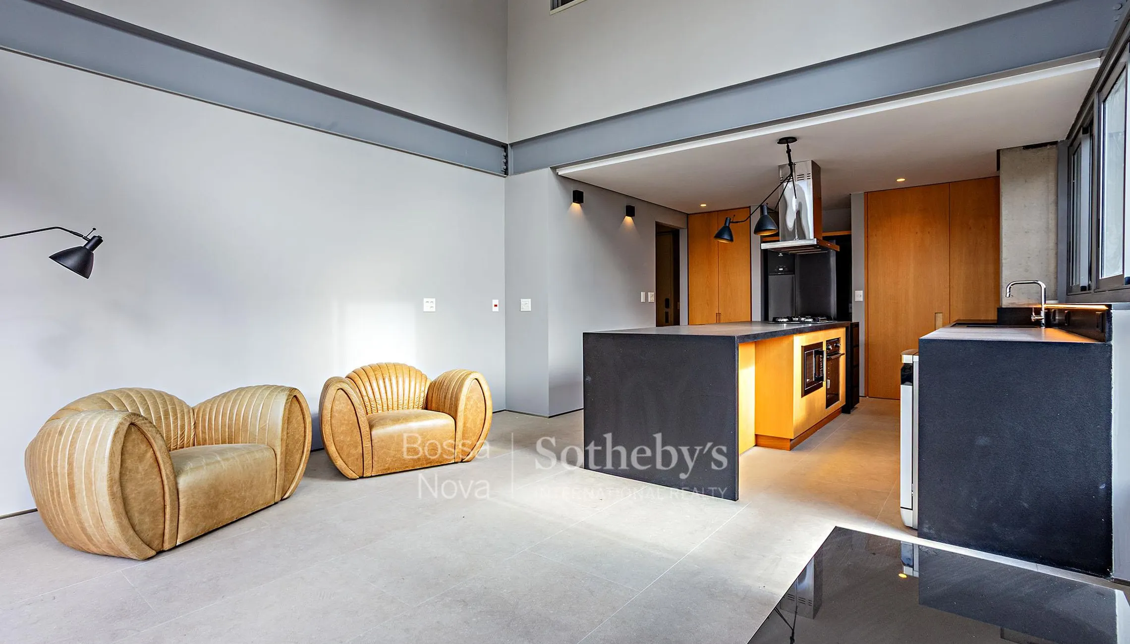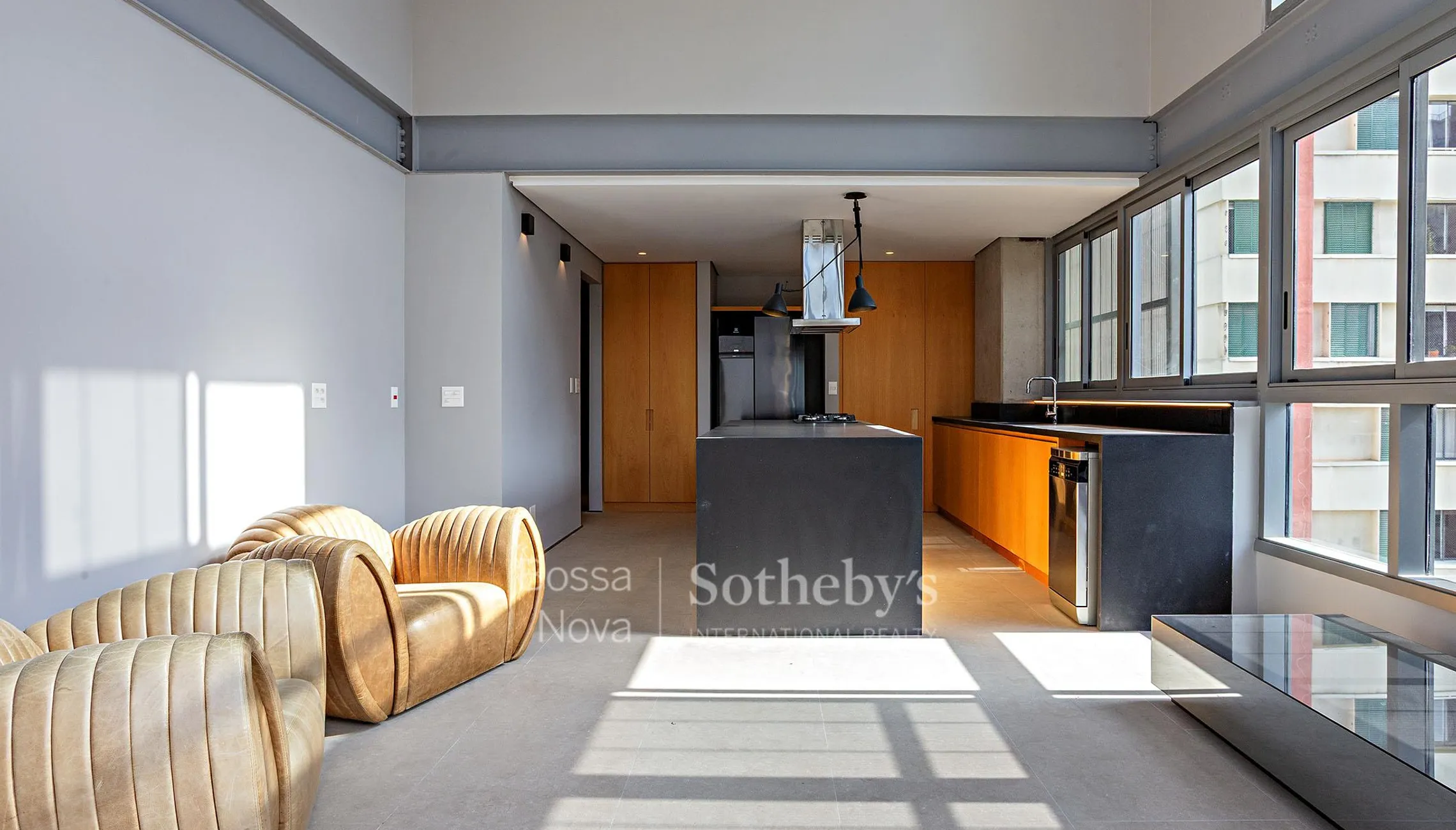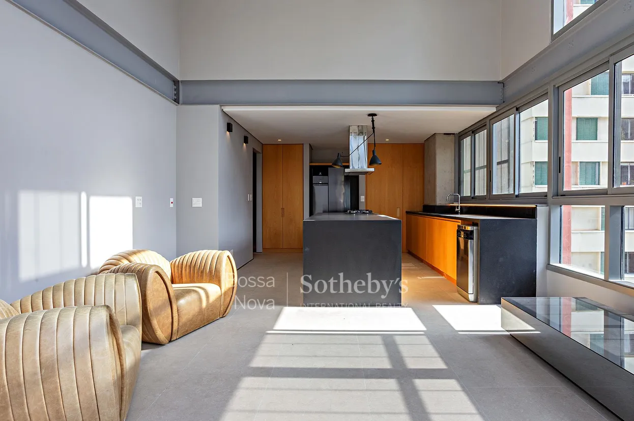 Duplex localizado em prédio assinado pela Idea!Zarvos, no coração dos Jardins. Situado em andar alto, oferece vista aberta para o entorno. O primeiro piso conta com ambiente único integrando cozinha, sala e varanda com pé-direito duplo, além de lavanderia e lavabo. No piso superior, há uma suíte confortável com espaço para closet e banheiro com bancada dupla. O imóvel nunca foi habitado e conta com marcenaria completa da Securit na cozinha, sala e suíte, além de ar-condicionado instalado em todos os ambientes. Dispõe de duas vagas de garagem e o condomínio oferece academia.