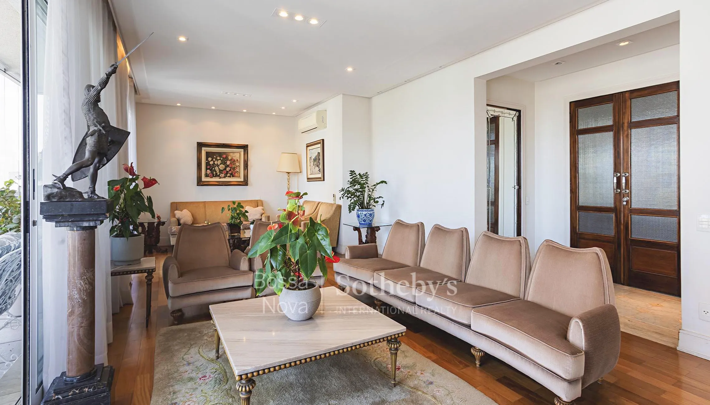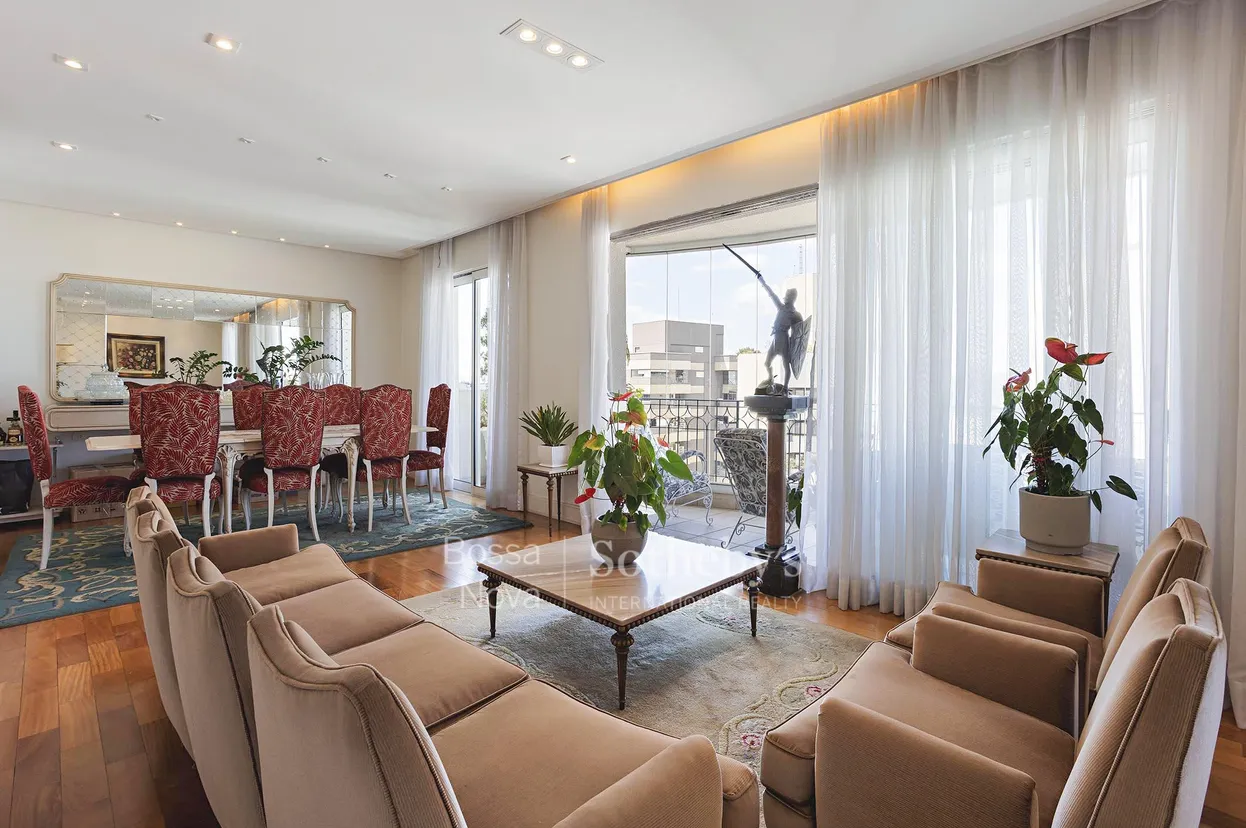 Este apartamento amplo está localizado na região plana e valorizada do Jardim América, a poucos passos do Clube Paulistano, e oferece vista para o entorno a partir da área social composta por três ambientes integrados e varanda que complementa o living. O hall de entrada organiza a circulação e conduz ao lavabo e à área íntima, que dispõe de três suítes, sendo a principal com banheira, além de corredor funcional com rouparia. A cozinha é espaçosa e bem distribuída, conectada à área de serviços com dependência completa para funcionário. O imóvel conta com três vagas de garagem, e o edifício oferece academia, jardim, portaria presencial vinte e quatro horas e playground, compondo um conjunto funcional em localização de alta conveniência.