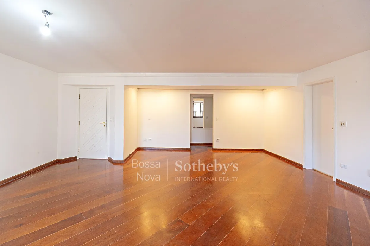 Apartamento localizado em condomínio tradicional da região, com planta bem distribuída e ambientes amplos. A área social conta com living para dois ambientes, favorecendo a integração e a iluminação natural, além de lavabo para apoio. A área íntima dispõe de três suítes confortáveis, sendo a principal equipada com ar-condicionado. A cozinha é planejada e bem organizada, conectada à área de serviço completa, que inclui dependência de funcionários. O condomínio oferece infraestrutura de lazer e conveniência com salão de festas, playground, quadra esportiva, churrasqueira, sauna, piscina, espaço gourmet e academia. A localização é um dos grandes diferenciais, próxima ao Clube Pinheiros, Shopping Iguatemi, Parque do Povo, estação Cidade Jardim e Avenida Faria Lima, com fácil acesso a uma ampla rede de restaurantes, serviços e comércio. O imóvel conta com duas vagas de garagem.