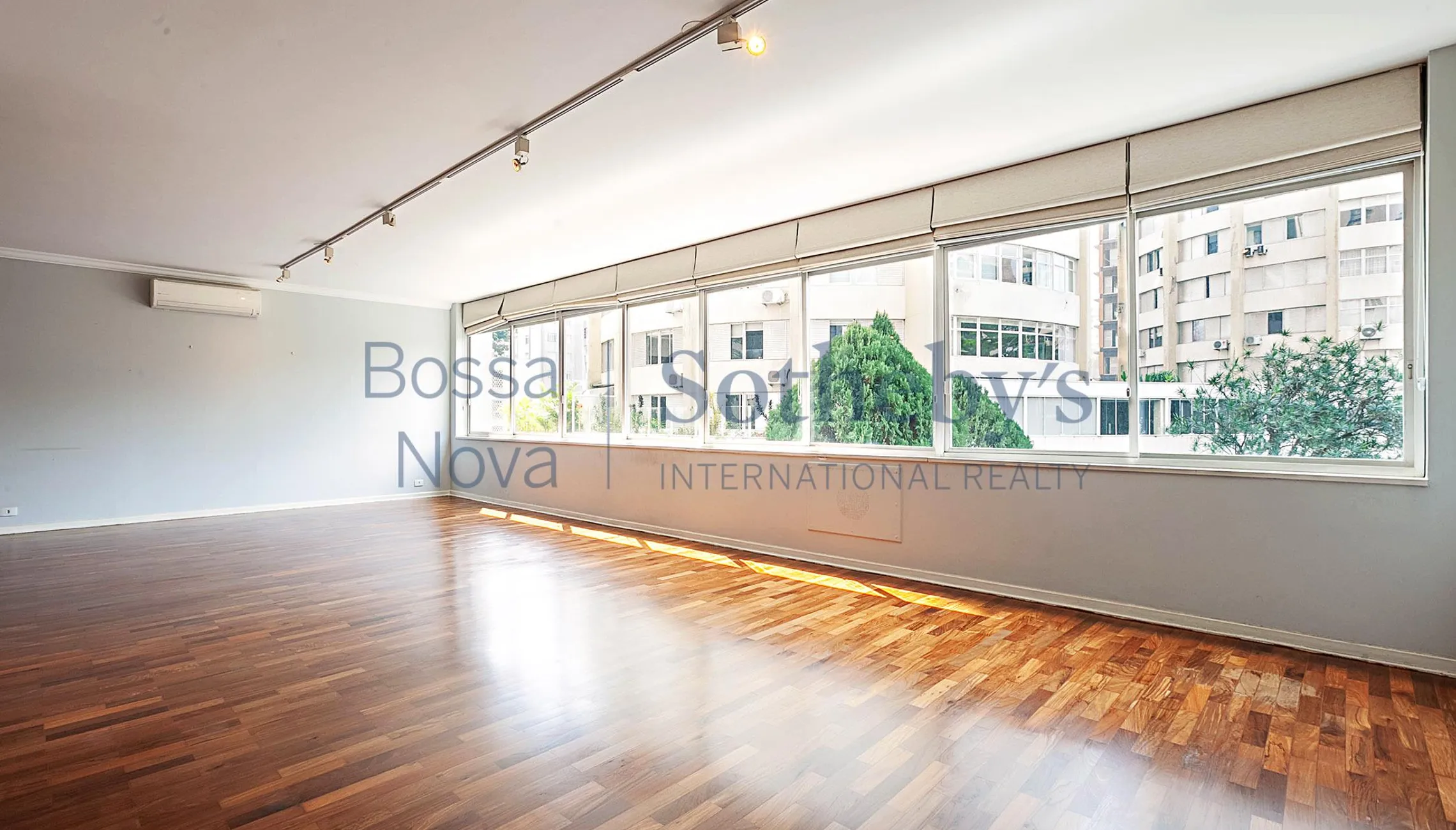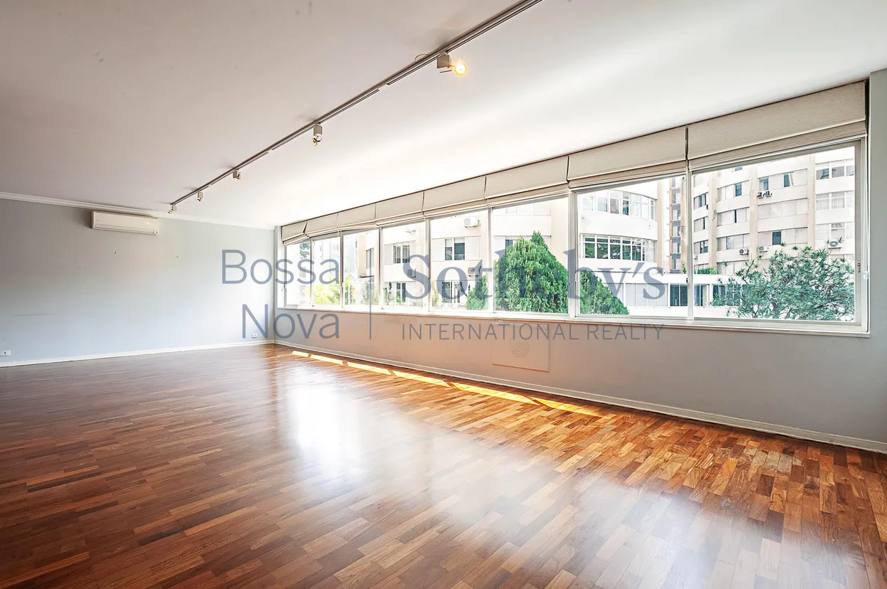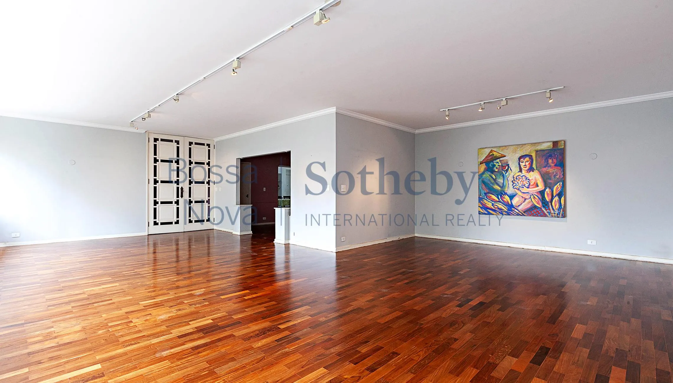 Apartamento em localização privilegiada no Jardim Europa, perto do Clube Pinheiros, da Avenida Faria Lima, do Parque do Povo e do Shopping Iguatemi. Apresenta living amplo com janelões, piso em madeira e ambientes integrados, incluindo sala de jantar e sala estar, e lavabo. Na área íntima há roupeiro e quatro dormitórios, sendo três atendidos por dois banheiros e uma suíte master espaçosa com closet. Por fim, dispõe de uma cozinha iluminada com despensa e uma área de serviço com dependência de funcionários.