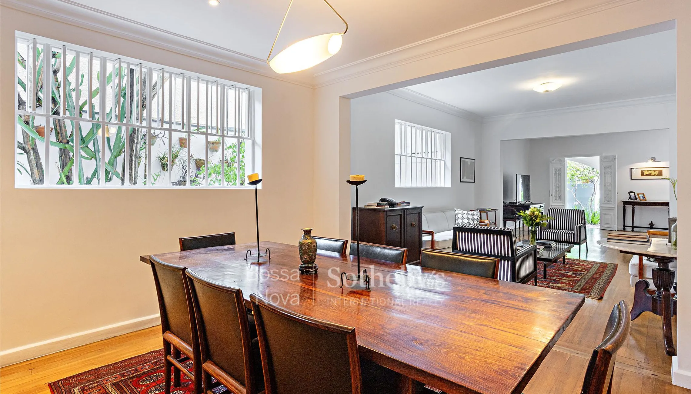 Localizada em rua do Jardim Europa, esta casa apresenta planta funcional distribuída em dois pavimentos, com paisagismo que valoriza o verde ao redor. A área social reúne living amplo com sala de jantar e louceiro, enquanto a sala de lareira ocupa ambiente independente. A parte externa dispõe de piscina e edícula que pode ser utilizada conforme a necessidade do morador, além de sauna úmida com chuveiro. A área íntima conta com quatro dormitórios, sendo uma suíte, e dois banheiros que atendem os demais quartos, dois deles voltados para o jardim frontal. A área de serviço oferece dois dormitórios, sala de apoio com banheiro e cozinha com espaço de copa que favorece o uso cotidiano.