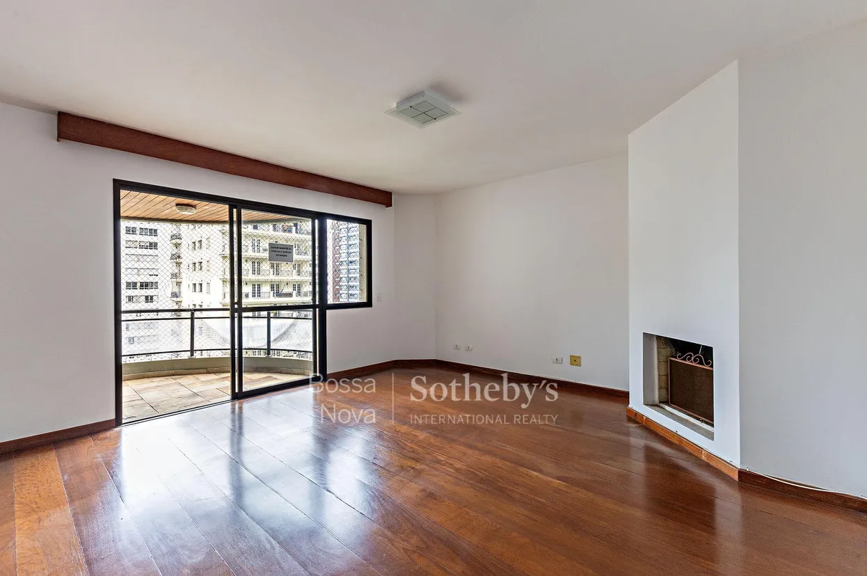 Este apartamento está localizado no Jardim Paulista, em andar alto que oferece boa luminosidade e privacidade. A área social reúne living para dois ambientes com lareira e sala de jantar integrada, favorecendo a convivência. A planta conta com três dormitórios, sendo uma suíte com banheira, além de circulação equilibrada entre os ambientes. O imóvel dispõe de duas vagas de garagem. O condomínio oferece piscina, academia e portaria presencial, proporcionando comodidade no dia a dia, em região próxima a serviços e comércios.