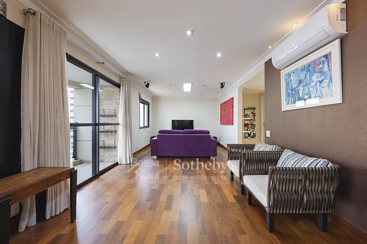 Apartamento mobiliado localizado em uma região valorizada do Paraíso, em rua tranquila e com fácil acesso a serviços, comércios e vias importantes do bairro. A área social apresenta um living amplo e bem distribuído, com ambientes integrados para sala de estar, home theater e sala de TV, além de varanda gourmet que amplia a convivência. O imóvel conta com ar-condicionado e armários planejados em todos os ambientes, cozinha funcional com espaço para copa e boa circulação. Na área íntima, são três suítes, sendo a principal com closet, todas bem iluminadas. A planta inclui área de serviço com dependência para empregada, composta por quarto e banheiro. O edifício oferece infraestrutura de lazer com piscina, academia, sauna, sala de massagem, brinquedoteca e salão de festas, além de três vagas de garagem e depósito.