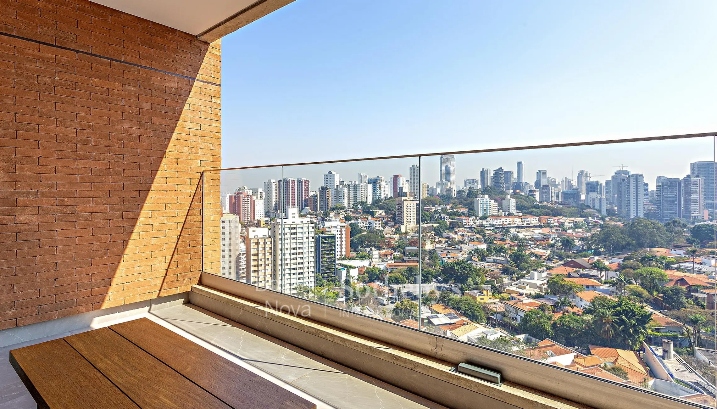 Apartamento duplex contemporâneo com varanda voltada para o pôr do sol