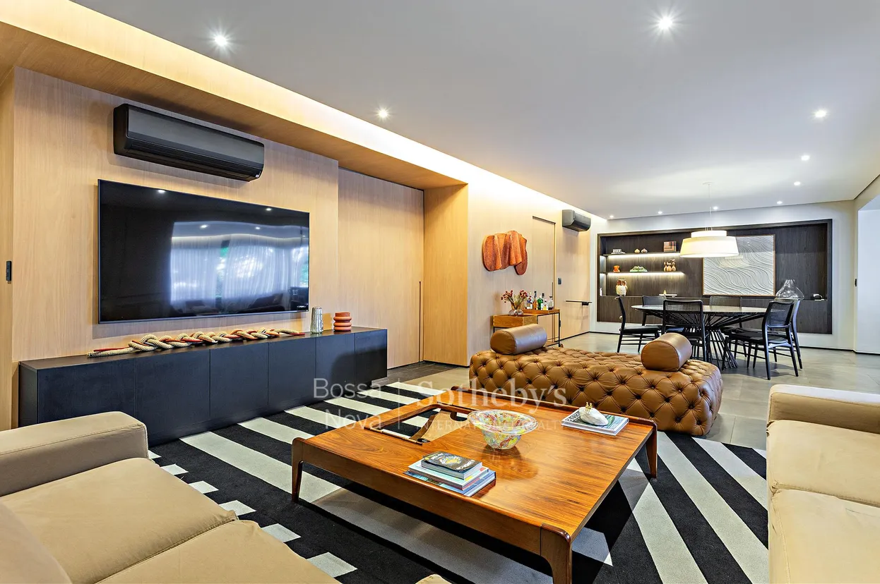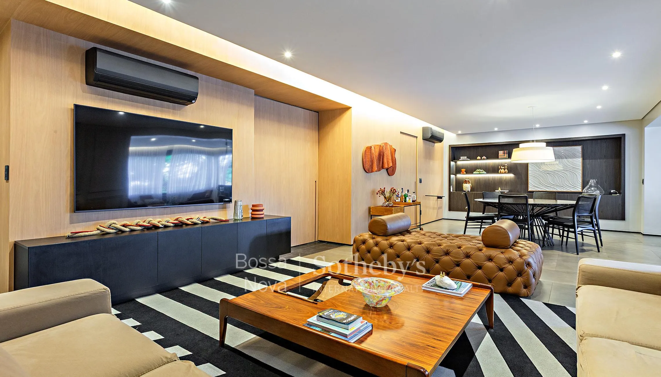 Localizado próximo ao Parque Ibirapuera, este apartamento passou por reforma recente e apresenta living amplo para três ambientes, com estar, jantar e espaço gourmet voltado para as copas das árvores. Um painel de madeira com porta embutida integra o living à copa e à cozinha, que conta com adega para quatrocentas garrafas. A área íntima reúne quatro suítes, sendo a principal com walk-in closet e duas áreas de banho, além de porta blindada e gerador para atendimento integral. O condomínio oferece infraestrutura completa de lazer, com piscina coberta e aquecida com raia, piscinas descobertas adulto e infantil, sauna, academia, pet play, salão de festas, playground e quadra de esportes, compondo um conjunto funcional em endereço de alta conveniência.
