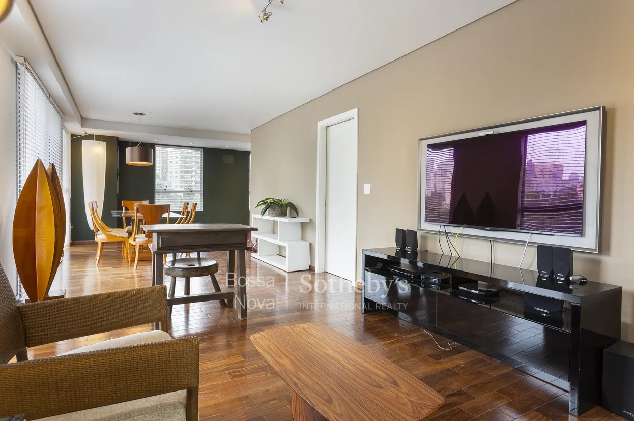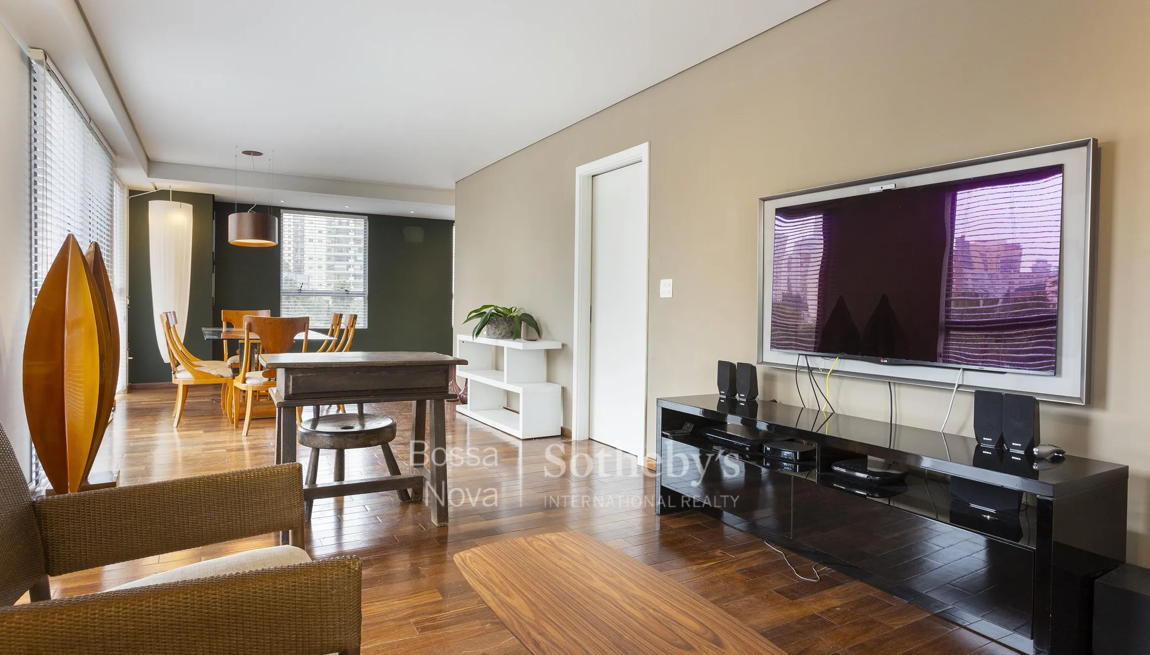 Apartamento mobiliado e funcional, localizado próximo ao Parque Ibirapuera e a uma variedade de restaurantes e serviços da região. A área social é composta por amplo terraço com vista livre, living integrado, armários planejados, ar-condicionado e acabamentos de qualidade. O edifício oferece duas vagas de garagem e depósito privativo. O condomínio dispõe de lavanderia coletiva, salão de festas, lounge gourmet com churrasqueira e forno de pizza, home office, salão de jogos, quadra de squash, academia, piscina com raia de 25 metros, sauna seca e playground.