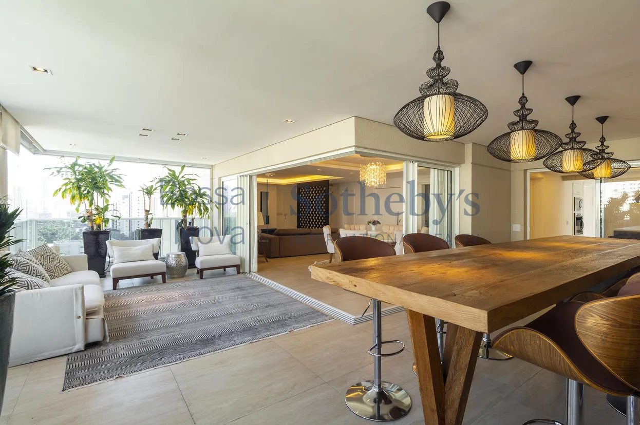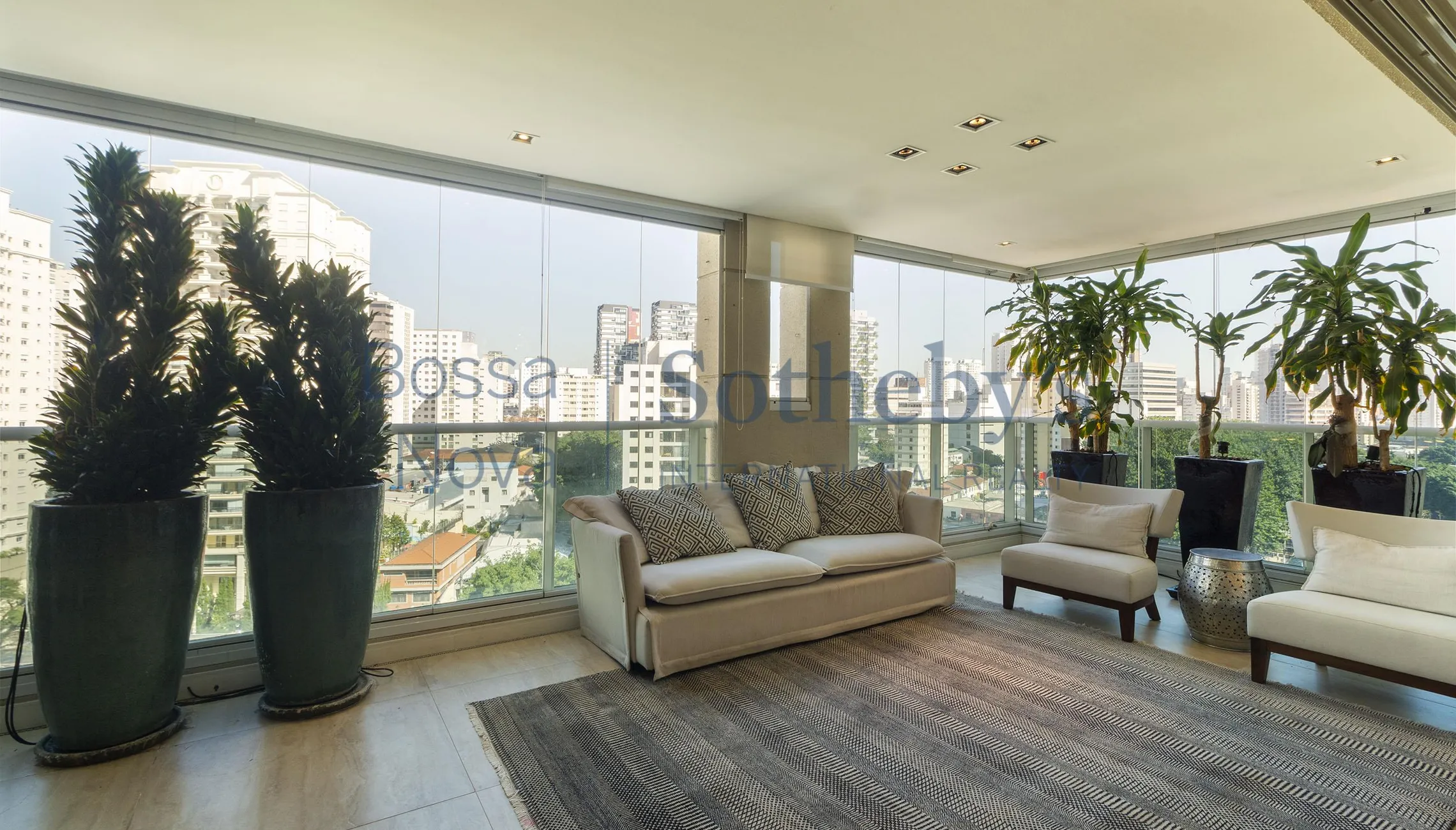 Apartamento para locação mobiliada, localizado na Vila Nova Conceição, em uma das regiões mais valorizadas da cidade, próximo ao Parque do Ibirapuera, ao colégio Móbile e ao Insper. Com projeto assinado por arquiteto, o living amplo acomoda diversos ambientes de estar, home theater e jantar, com adega climatizada e piso em porcelanato. O terraço gourmet é envidraçado e integrado à área social, e o imóvel conta com ar-condicionado em todos os ambientes, proporcionando conforto térmico. A área íntima dispõe de três suítes, sendo a suíte master com walk-in closet e banheiro com jacuzzi. Há depósito privativo na garagem. O condomínio é bem recuado em relação à rua, com jardim, composto por duas torres, e oferece infraestrutura de lazer com piscina aquecida, solarium, playground, brinquedoteca, salão de festas, sala de ginástica, sauna seca, quadra poliesportiva, quadra de squash e espaço lounge, além de sistema de segurança com portaria vinte e quatro horas.