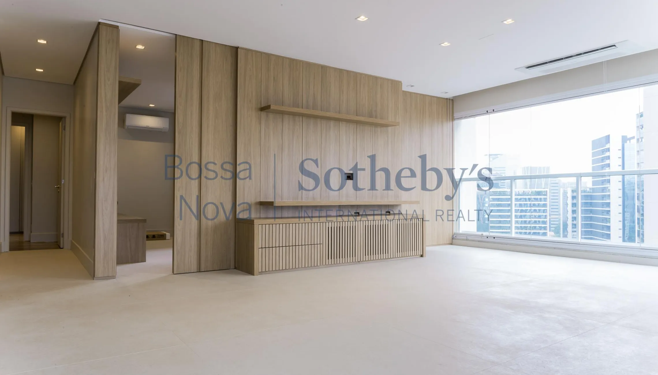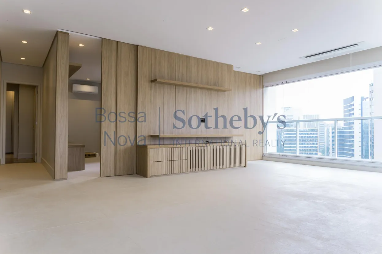 Localizado próximo da Avenida Faria Lima, Shoppings Vila Olímpia e JK e novo centro financeiro da cidade de São Paulo. O apartamento é composto por living integrado a varanda gourmet envidraçada com vista aberta para a cidade. Na área íntima, dispõe de três suítes, sendo a terceira transformada em um home theater. Boa área de serviço com quarto e banheiro de funcionária. Detalhes como ar-condicionado em todos os ambientes, projeto de gesso, iluminação e marcenaria completa. Edifício com linhas contemporâneas recém entregue pela construtora Camargo Corrêa, um por andar, 23 andares além de paisagismo.