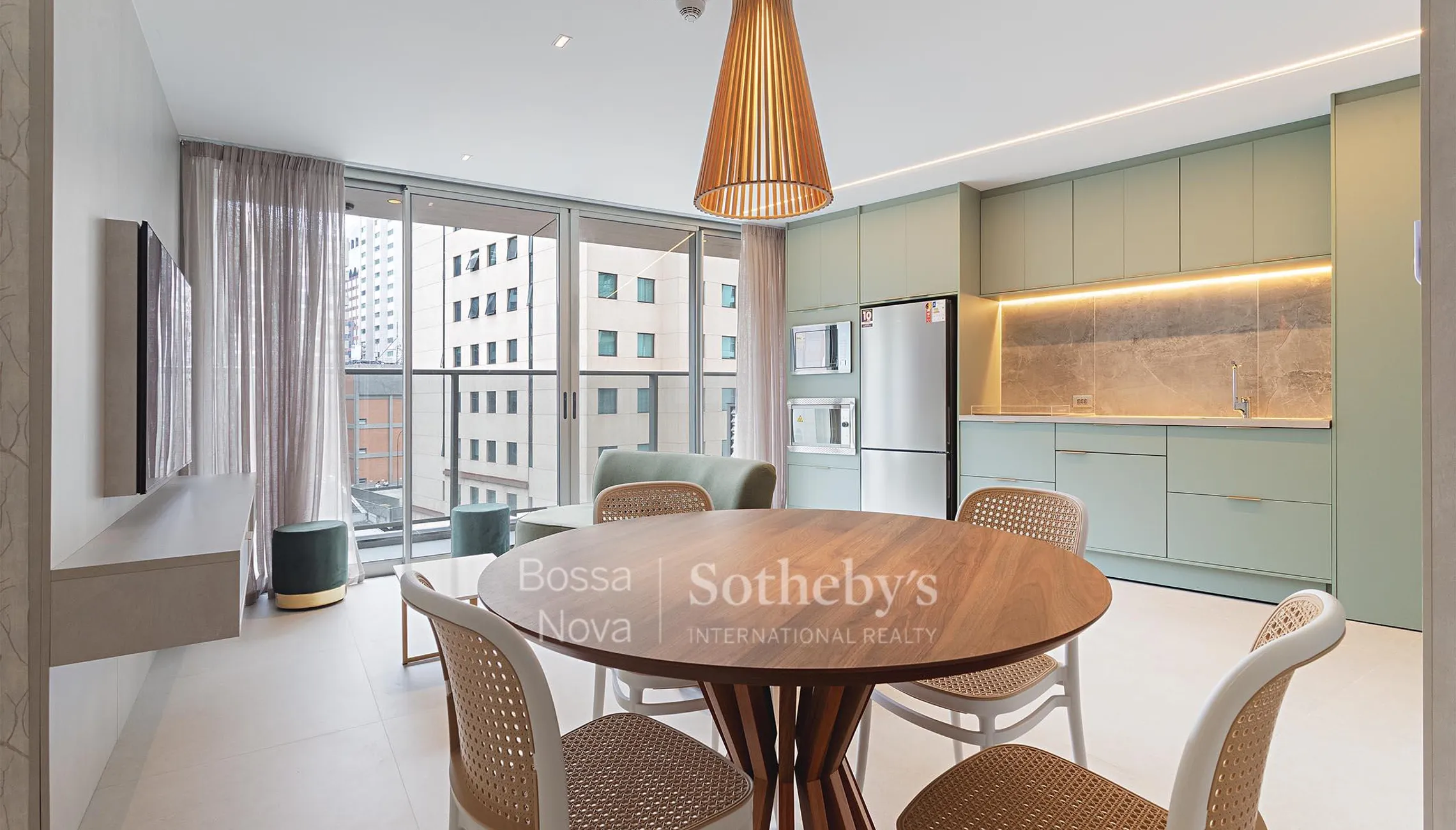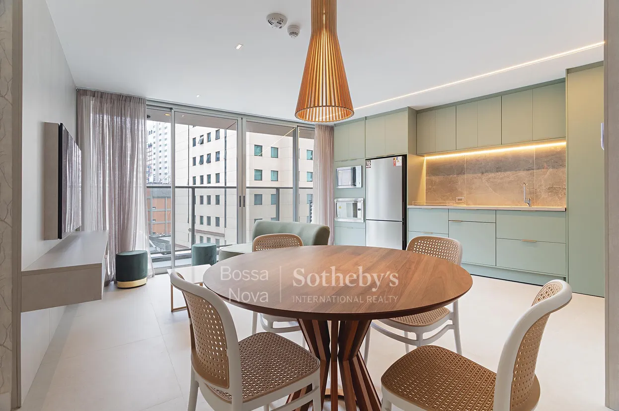 Localizado na região central da Vila Olímpia, este apartamento mobiliado combina conforto e praticidade em um projeto contemporâneo. O living é integrado à cozinha totalmente equipada e se conecta ao terraço com vista livre, proporcionando um ambiente agradável e funcional. A área íntima conta com uma suíte, um dormitório adicional e um banheiro social, com acabamentos que valorizam o design e a luminosidade natural dos espaços.
