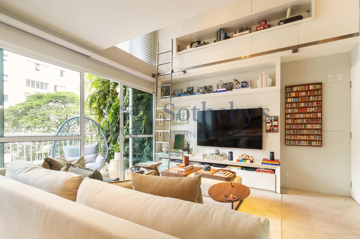 Loft duplex mobiliado em localização exclusiva. O living possui pé-direito duplo, terraço com parede dupla e piso em limestone, cozinha aberta para a sala de jantar, toda equipada com linha branca, área de serviço com lavadora de roupa e tanque, e lavabo. O piso superior conta com uma suíte, closet e banheiro com pia dupla. Todos os ambientes com ar-condicionado e trabalho de marcenaria refinado. O condomínio é cobiçado e tem lazer completo. No rooftop há piscina descoberta, espaço gourmet e churrasqueira, já no térreo existe piscina coberta com raia, sauna, ofurô, jardim com espelhos d’água e carpas, gazebos, espaço fitness e salão de festas.