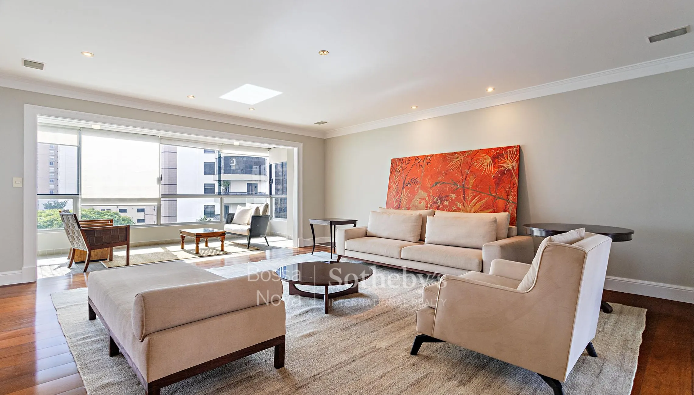 Localizado em rua tranquila de Moema Pássaros, próximo ao Parque Ibirapuera e ao Clube Monte Líbano, este apartamento reformado recebeu projeto de arquitetura e acabamentos de qualidade. Com 315 m², dispõe de quatro dormitórios, sendo três suítes, além de escritório privativo. A área social reúne living integrado para vários ambientes e terraço com boa entrada de luz natural. Conta ainda com copa e cozinha planejadas e equipadas. O edifício oferece infraestrutura completa de lazer, incluindo piscina, academia, jardins e quadra poliesportiva, além de sistema de segurança.