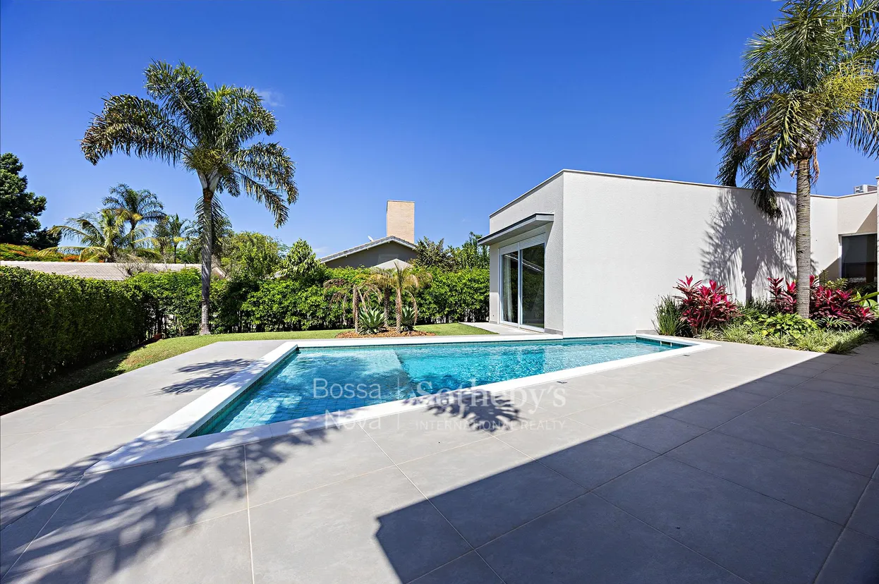 Casa térrea reformada próxima ao campo de golfe, com ambientes amplos e iluminados que privilegiam integração e fluidez entre os espaços. O living se conecta ao home privativo e à área gourmet, enquanto a cozinha planejada complementa a funcionalidade da planta. A área íntima dispõe de três suítes, incluindo a principal com closet. A área externa conta com piscina que compõe o lazer da residência, reunindo atributos adequados para quem busca praticidade em região com acesso a serviços e áreas de recreação.