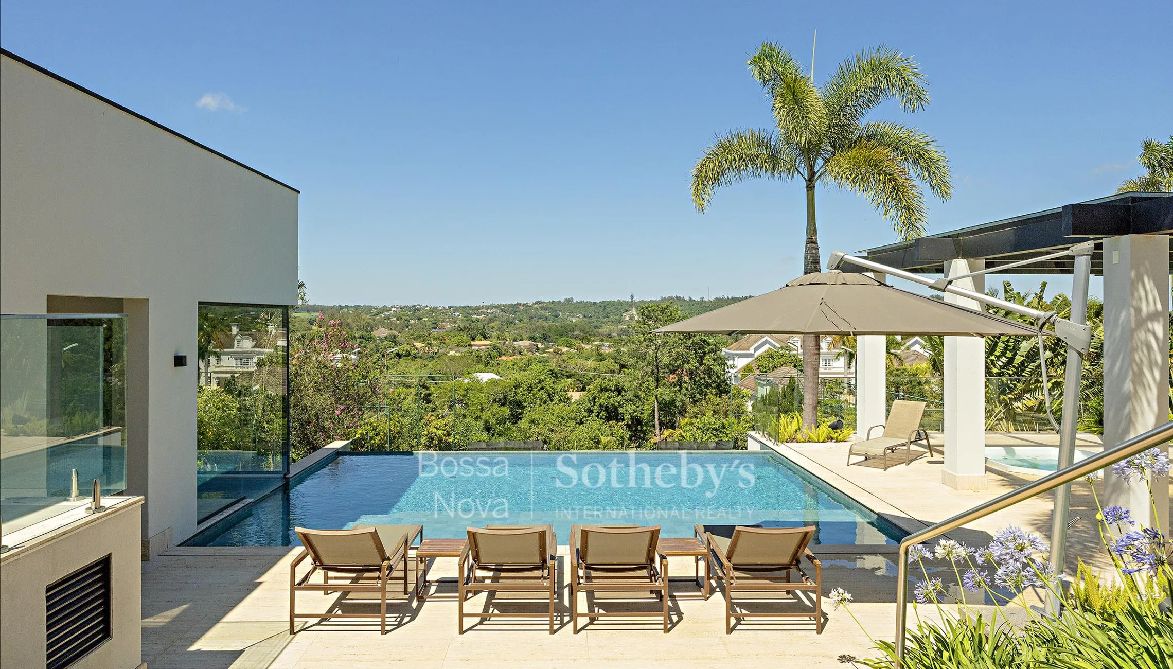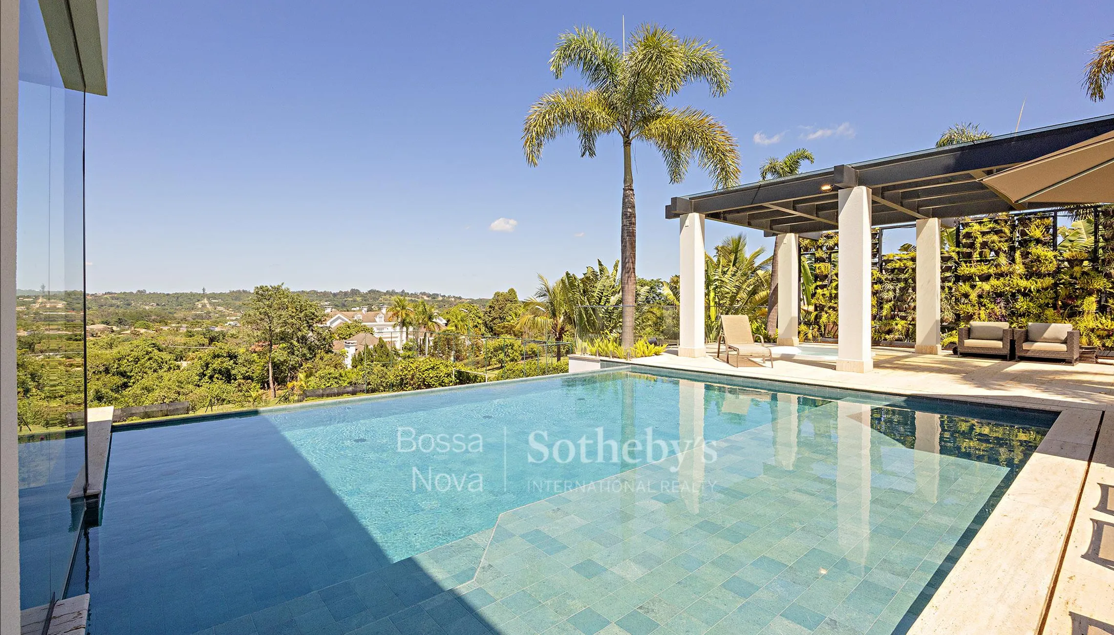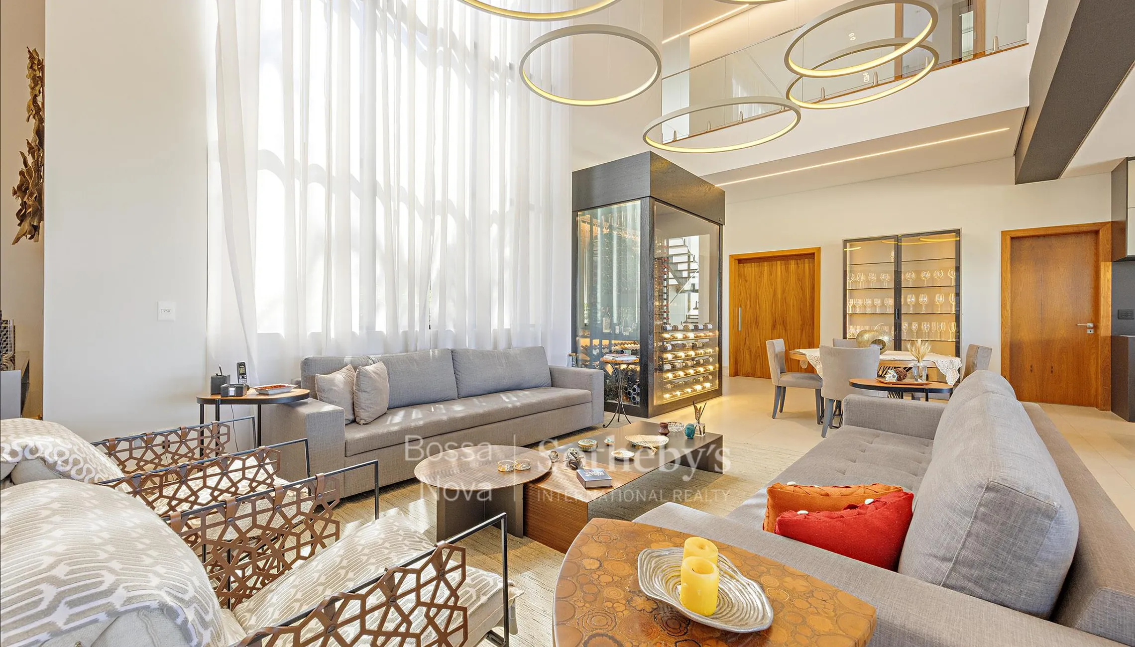 Casa recente, projetada para oferecer ambientes amplos e bem integrados, ideal para receber. O living reúne três ambientes conectados à área gourmet equipada, além de adega com capacidade para seiscentas e cinquenta garrafas. A cozinha planejada conta com bancada estendida, despensa, lavanderia e suíte de serviço. A área íntima, acessível por escadas ou elevador para seis pessoas, dispõe de cinco suítes com terraço e persianas elétricas, incluindo a suíte principal com vista aberta. A área externa oferece piscina aquecida, jacuzzi, sauna úmida, vestiários e paisagismo com espécies variadas, além de campo de futebol, pomar e horta. Um ambiente adicional pode ser utilizado como academia ou garagem suplementar. A casa conta com automação, câmeras, som ambiente, garagem coberta para quatro carros, vagas extras, oficina com banheiro e depósito.