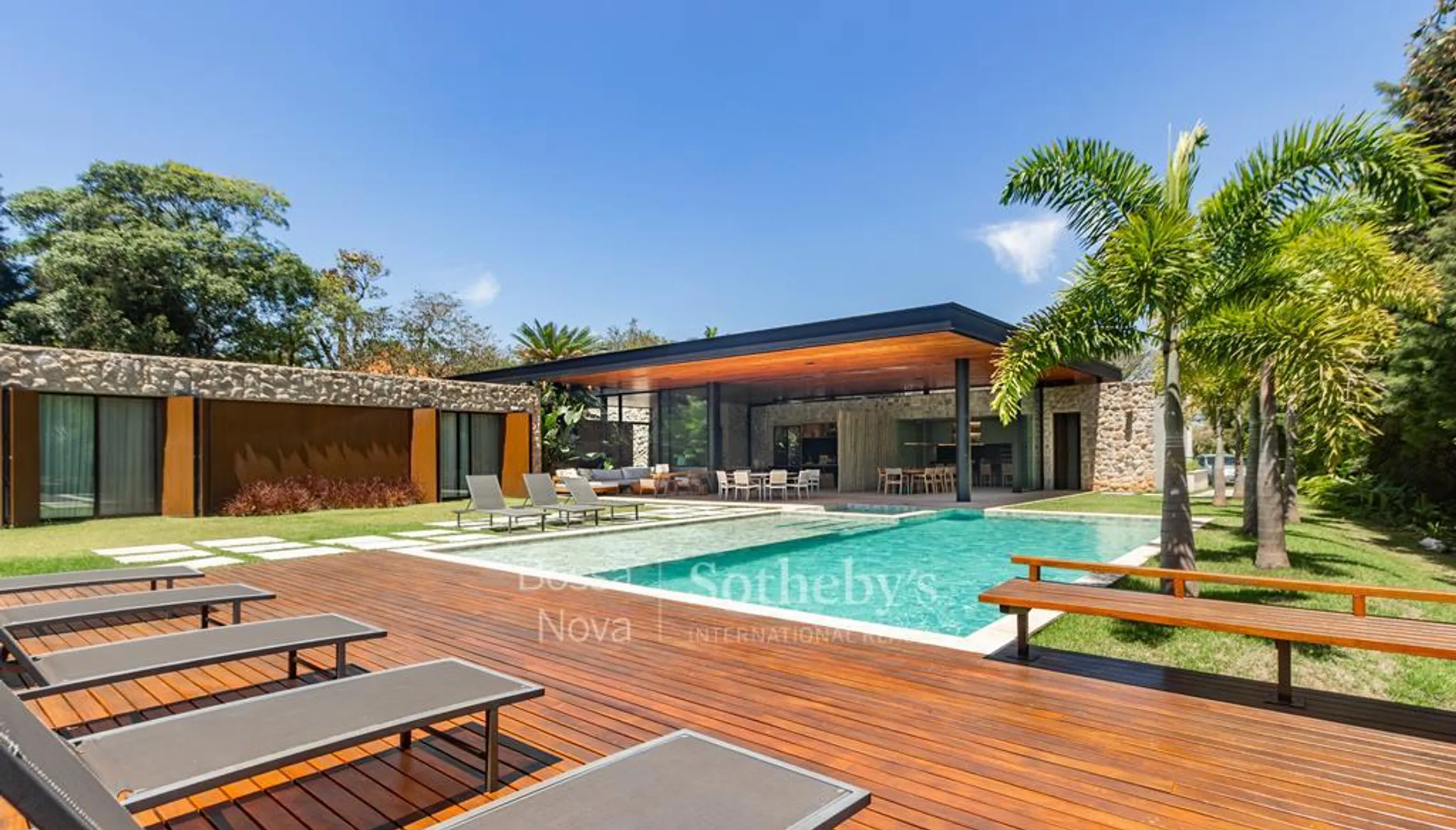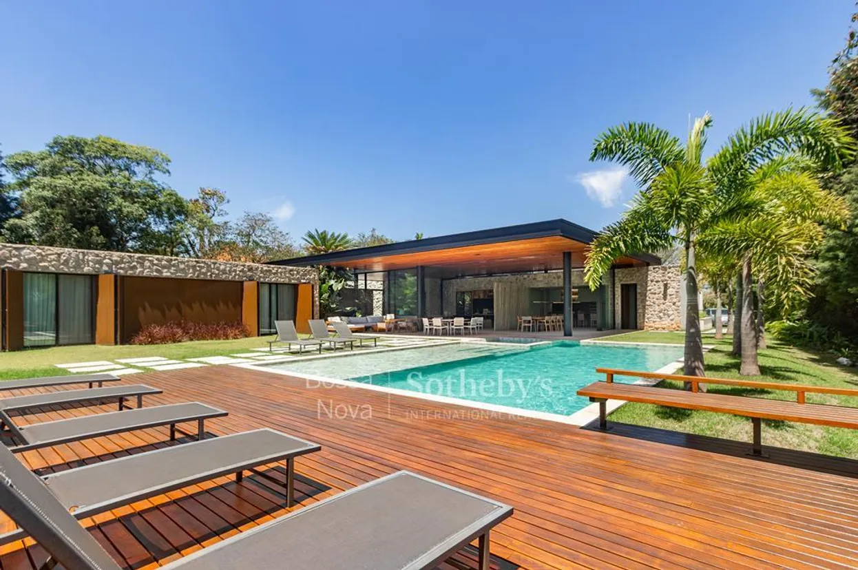 Casa mobiliada no Terras de São José I, com ambientes amplos e integração voltada ao jardim com paisagismo assinado por MHC. A área íntima é composta por seis suítes, podendo uma delas ser utilizada como sala de TV, todas com portas de vidro do piso ao teto que favorecem a luminosidade natural e a conexão com a área externa. A suíte principal dispõe de closet, banheiro iluminado e banheira externa. Os acabamentos foram escolhidos com atenção à qualidade e funcionalidade, criando uma residência preparada para uso imediato em um dos condomínios mais reconhecidos da região.
