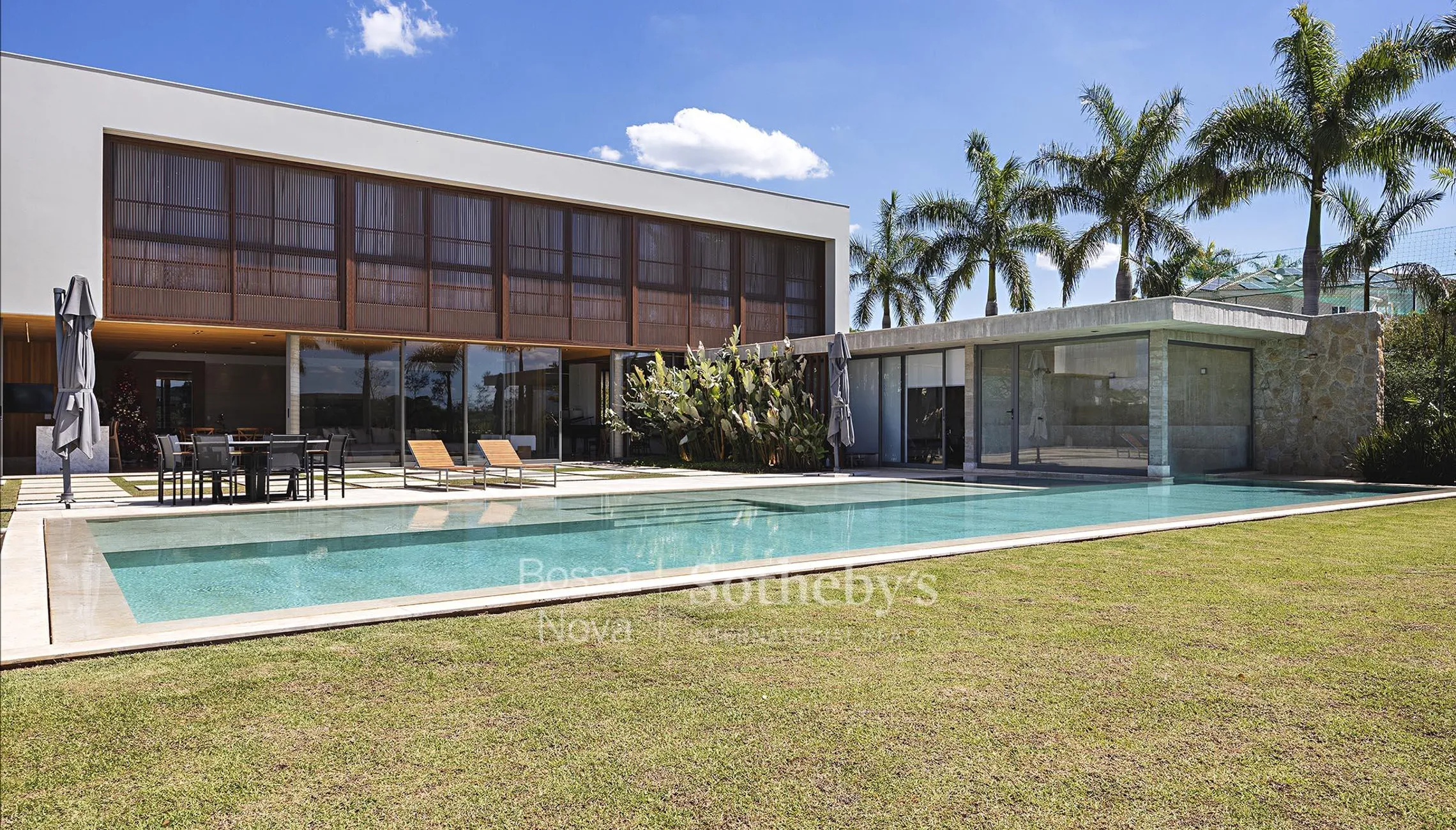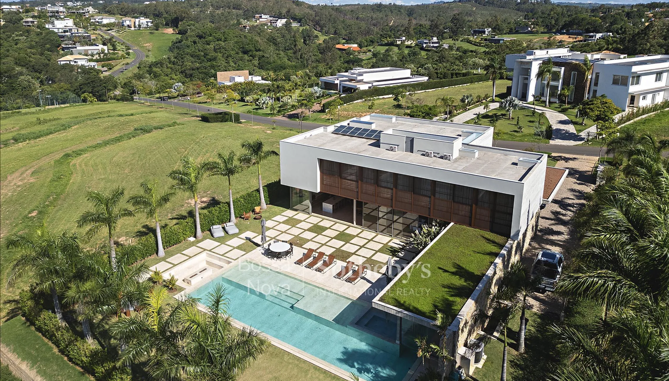 Esta residência apresenta arquitetura contemporânea e integração entre os ambientes, situada no Terras de São José II. A área social conta com living com pé-direito duplo dividido em três ambientes, adega climatizada, home theater e conexões diretas com o espaço gourmet, que reúne três áreas adicionais e cozinha planejada. Na área íntima, são seis suítes, incluindo uma reversível atualmente utilizada como escritório e sala de TV, além da suíte principal, que dispõe de walk-in closet e dois banheiros. O lazer contempla academia, sauna úmida, home theater externo e jardim que contorna a propriedade. O condomínio oferece infraestrutura completa de segurança e lazer.
