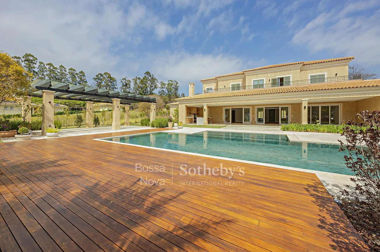 Projeto assinado por Antonio Scarpa, esta residência nova está situada em rua tranquila com paisagismo consolidado. A área íntima conta com seis suítes amplas, incluindo a principal com dimensões generosas. Os acabamentos são contemporâneos, com ar-condicionado em todos os ambientes e marcenaria sob medida em todos os cômodos. A cozinha é equipada, e há dependência para funcionários. A área externa integra piscina e gazebo ao paisagismo, e a casa conta ainda com sistema de automação.
