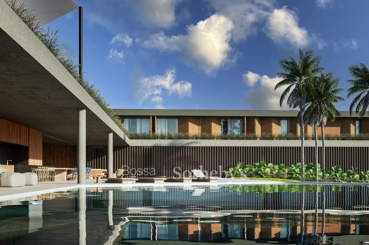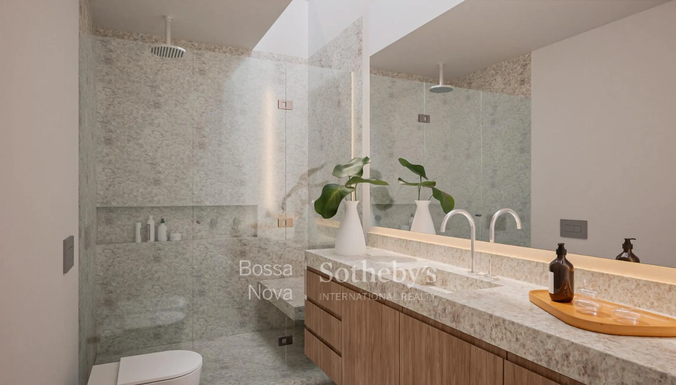 Residência de dois pavimentos no condomínio Fazenda da Grama, com projeto contemporâneo que organiza os espaços de forma funcional para momentos de convivência e privacidade. No térreo, a área social reúne living integrado à adega, área gourmet com churrasqueira, piscina, brinquedoteca, cinema privativo, academia e sauna, além de cozinha com despensa, louceiro e conexões diretas com as áreas de serviço. O pavimento também abriga home office, duas suítes de hóspedes e dependências destinadas à equipe de apoio. A garagem coberta para cinco veículos está posicionada junto a um extenso terreno destinado ao paisagismo. No piso superior, a ala íntima inclui suíte master com banheiros individuais e amplo closet, além de quatro suítes adicionais, sala de TV, copa de apoio e closet geral. O rooftop oferece ambiente ao ar livre com fire place e cobertura em lona tensionada, ideal para uso em diferentes períodos do ano.