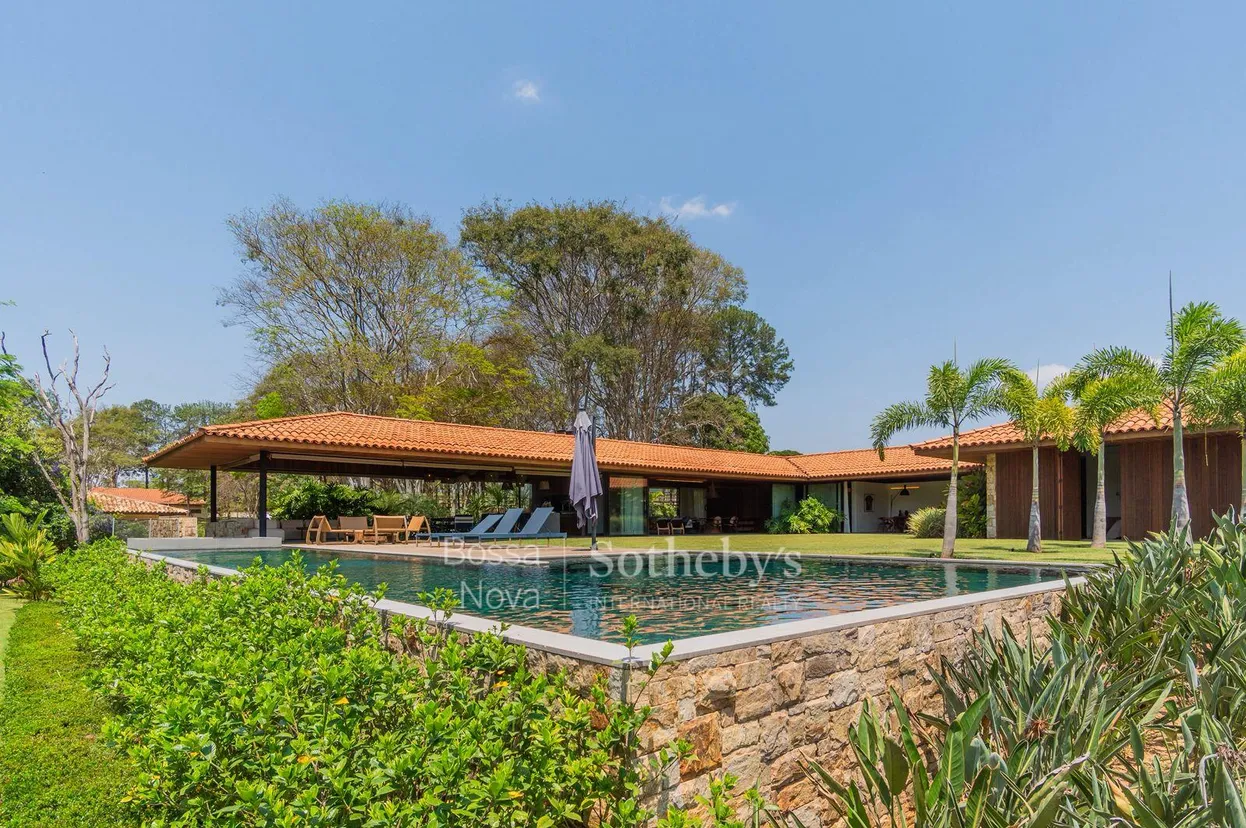 Casa térrea, com arquitetura contemporânea e ambientes amplos. Dispõe de living para três ambientes, com lareira e vista para o verde dos dois lados, cozinha ampla com ilha e dependência de funcionários. A área íntima é composta por cinco suítes confortáveis, sendo uma master. Há, ainda, uma varanda com área gourmet, piscina, spa, vestiário, sauna úmida e sala de massagem. Por fim, a casa conta com garagem coberta e descoberta para dois carros e depósito. O condomínio Haras Larissa é um empreendimento completo, com infraestrutura de lazer e segurança.