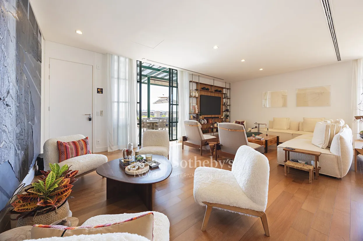 Localizada no condomínio Boa Vista Village, projeto que integra natureza, arquitetura contemporânea e infraestrutura de lazer em harmonia, esta cobertura dispõe de três suítes bem distribuídas, sendo a principal com varanda privativa. As áreas sociais reúnem sala de estar e jantar com abundante luz natural, além de cozinha integrada equipada com eletrodomésticos Gorenje e marcenaria de alto padrão. A varanda gourmet, com churrasqueira e hidromassagem, amplia o espaço de convivência e oferece vista para o entorno. Os acabamentos nobres, o projeto de iluminação e o sistema de automação valorizam cada ambiente, unindo funcionalidade e estética refinada. O condomínio oferece acesso ao clube exclusivo do Boa Vista Village, que inclui piscina de ondas para prática de surf, beach club, spa, sauna, academia, restaurante, espaço wellness e áreas dedicadas ao bem-estar. A segurança é garantida com portaria 24 horas e controle de acesso. O paisagismo valoriza a vegetação nativa, e a infraestrutura oferece conveniência e praticidade no cotidiano.
