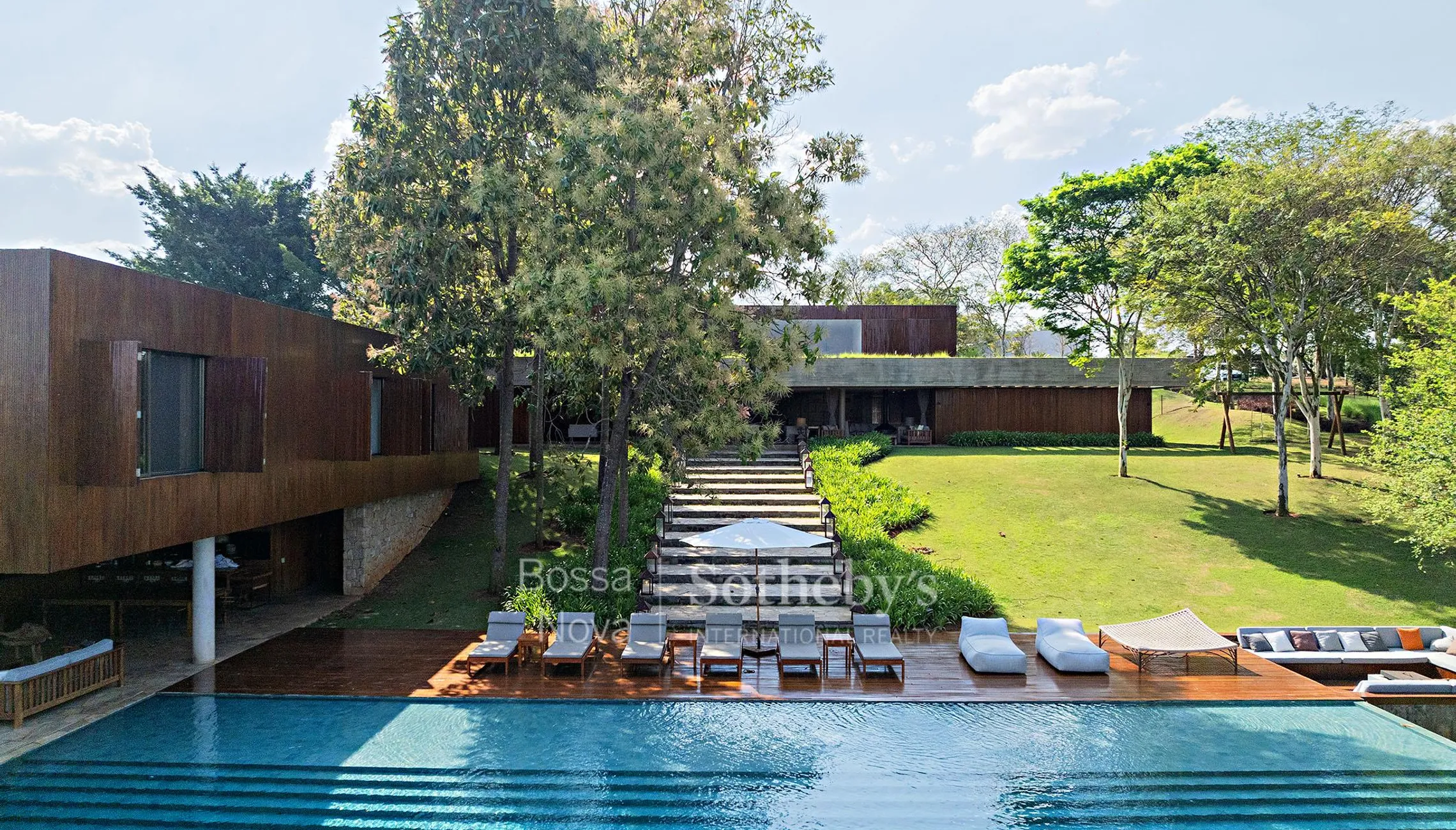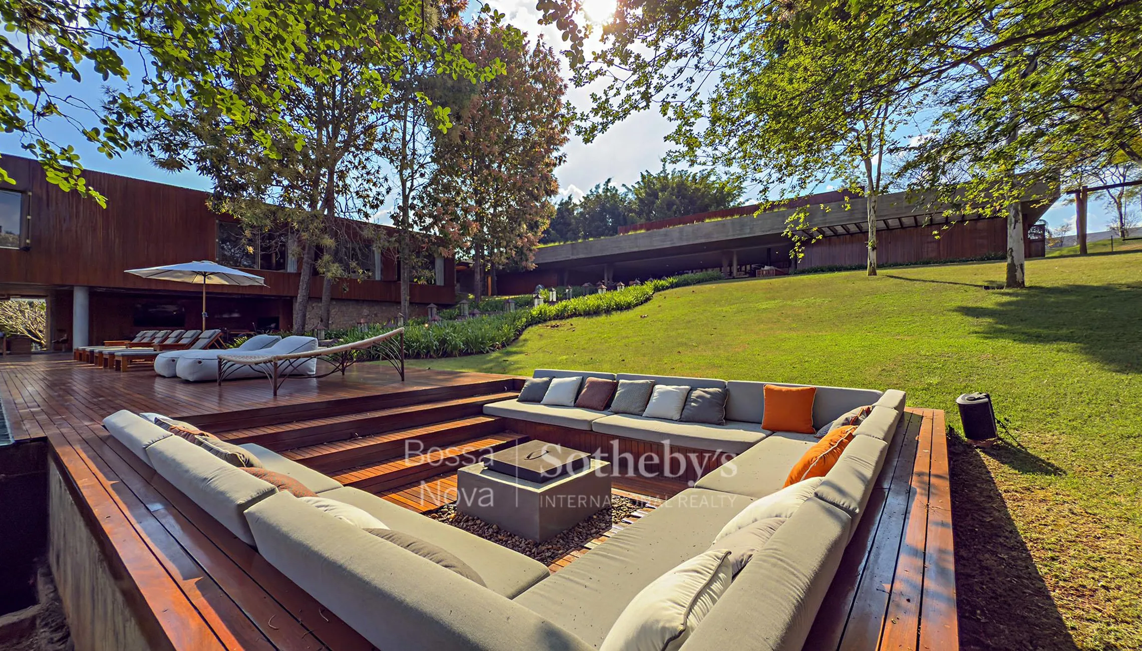 Com projeto assinado por Carolina Proto, do Estúdio Obra Prima, esta casa mobiliada está situada em uma localização privilegiada na Fazenda Boa Vista. Implantada em um terreno de 5.100 m² com 1.830 m² de área construída, a residência foi concebida para integrar conforto, elegância e funcionalidade em meio à natureza. O living é amplo e conectado ao home, proporcionando espaços de convívio bem distribuídos. A área social também conta com escritório e cozinha equipada com eletrodomésticos Viking, além de despensa e duas suítes para funcionários. A área íntima contempla sete suítes, sendo três internas e quatro na ala de hóspedes, com destaque para a suíte principal, que dispõe de dois banheiros e dois closets. O lazer é um dos grandes atrativos, com piscina aquecida, sauna seca e área gourmet completa equipada com eletros Viking e banheiro de apoio. O sky garden, com lareira externa, oferece vista para a mata de área de preservação e para a piscina, reforçando a conexão com o entorno. O jardim conta ainda com uma segunda lareira externa, ideal para momentos de contemplação. O imóvel dispõe de automação completa para iluminação interna e externa, incluindo o jardim, além de sistema de som distribuído por toda a casa e área externa. Conta ainda com um apartamento completo para caseiro, dois depósitos, garagem coberta para seis veículos e espaço adicional externo para dez carros.