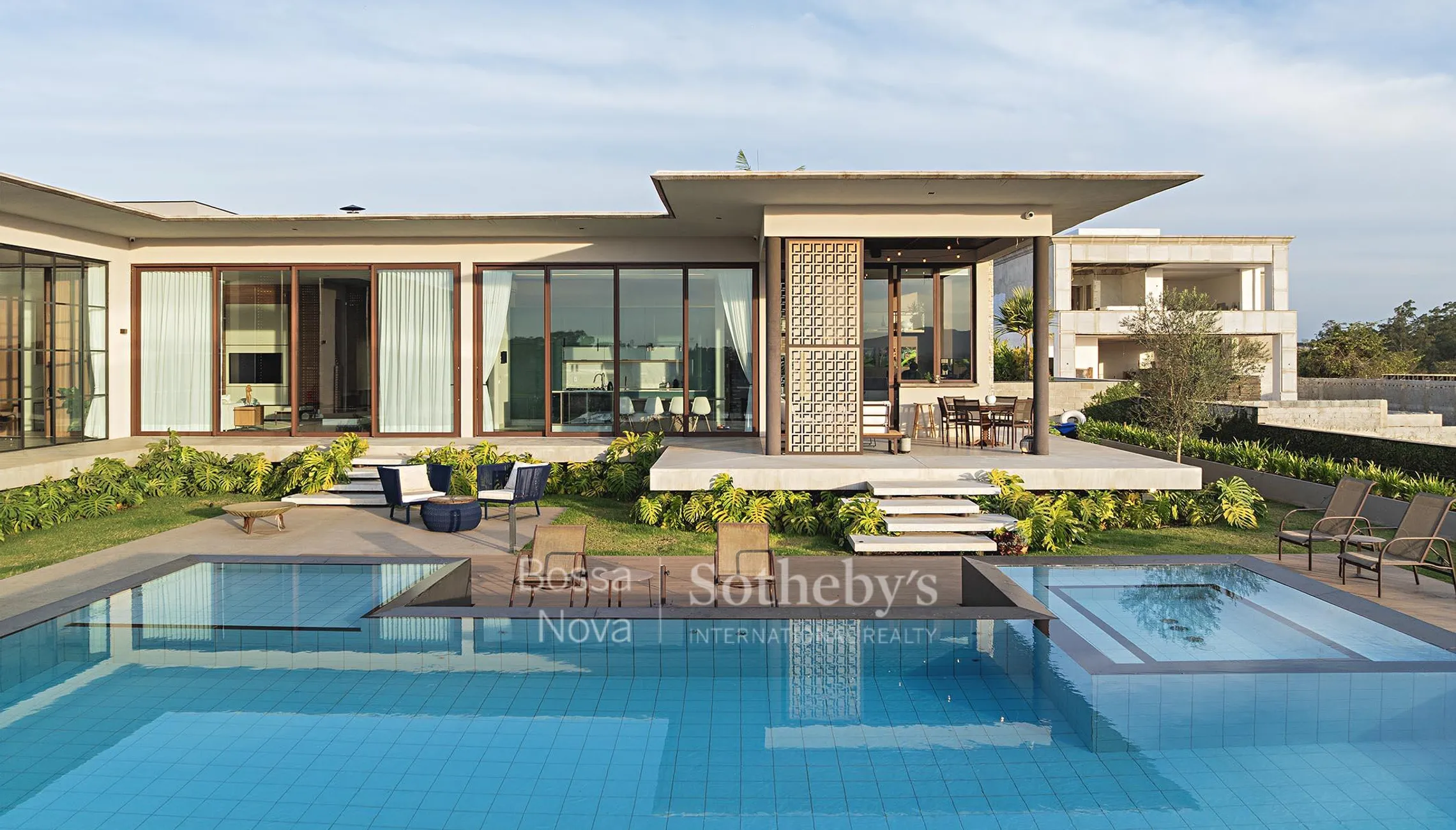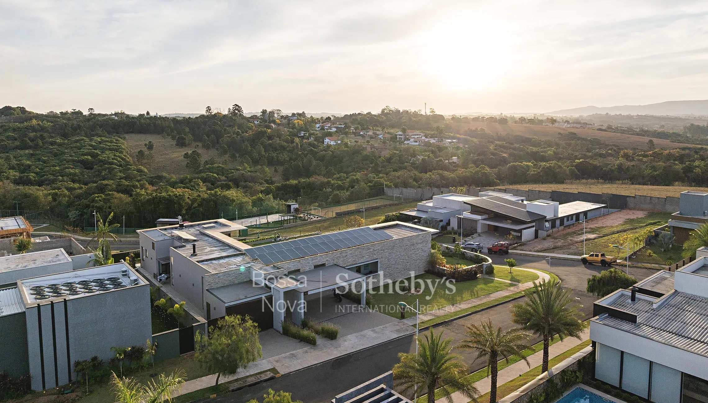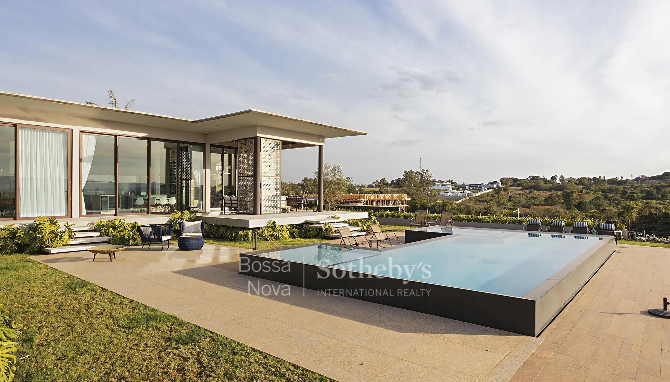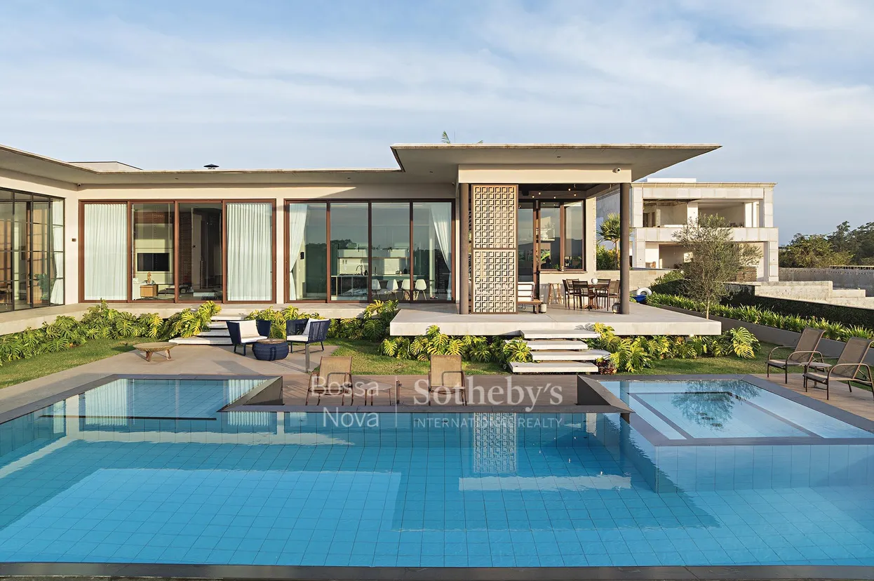 Casa térrea em condomínio, com projeto de design autoral, pé-direito alto e vista aberta para o pôr do sol. A planta integra amplos ambientes sociais ao espaço externo, que inclui piscina privativa e paisagismo planejado. A área íntima dispõe de três suítes bem distribuídas. Entre os diferenciais estão recursos de tecnologia e sustentabilidade, além da privacidade proporcionada pelo projeto.