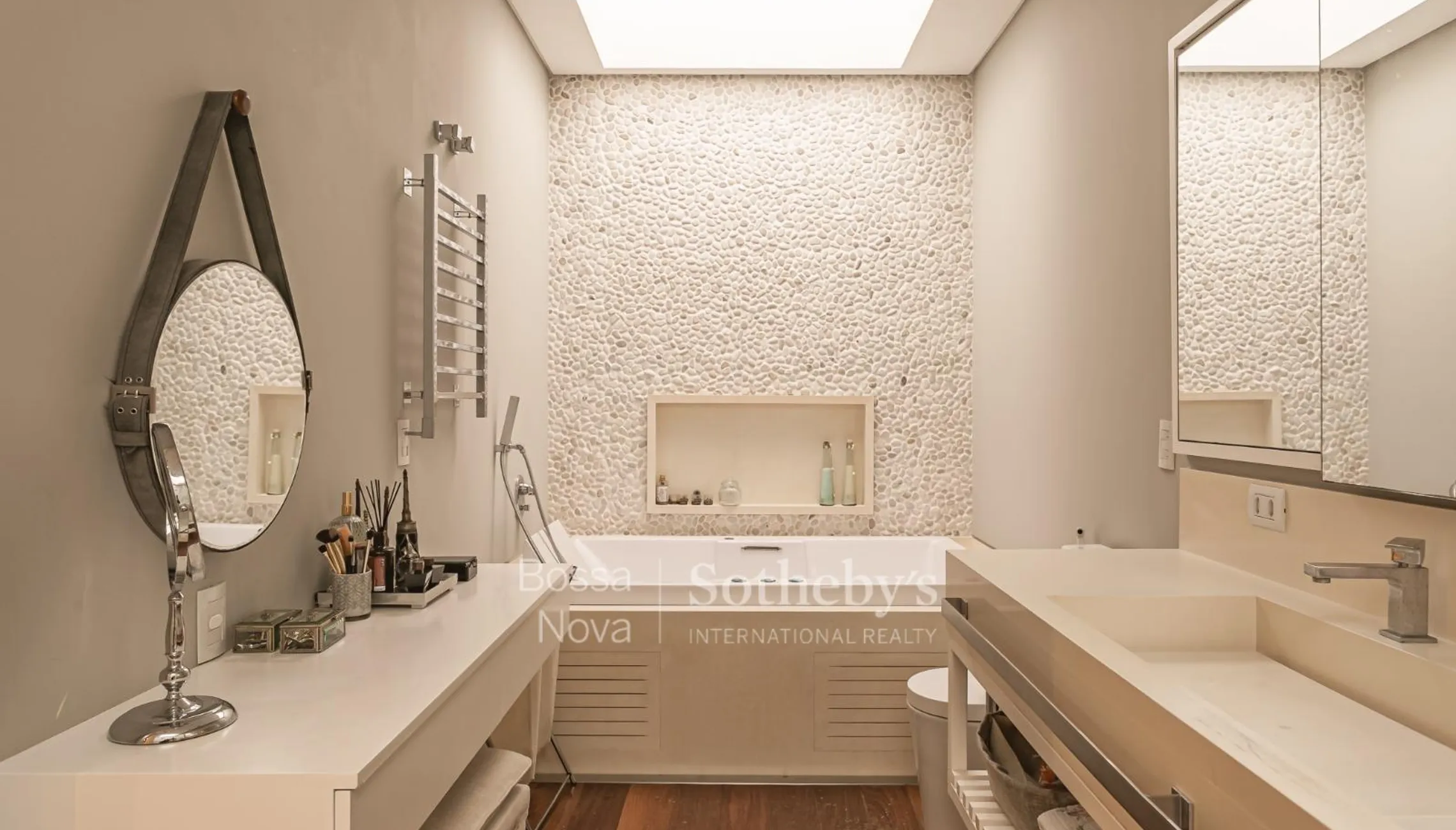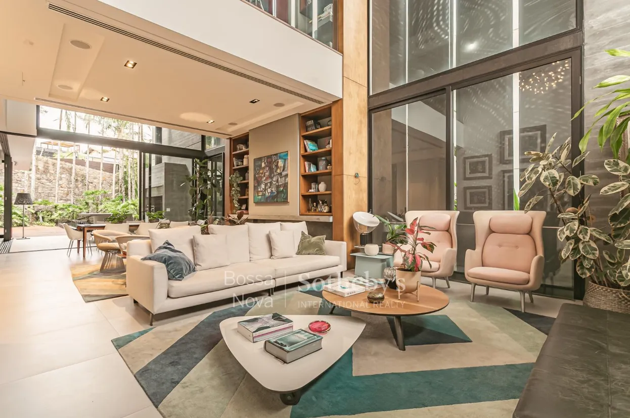 São 5 suítes, sala de cinema, academia completa, office, lavabo, pátio com espaço gourmet e churrasqueira, além de garagem para 3 carros e terraço com uma vista incrível para o mar e o pôr do sol.