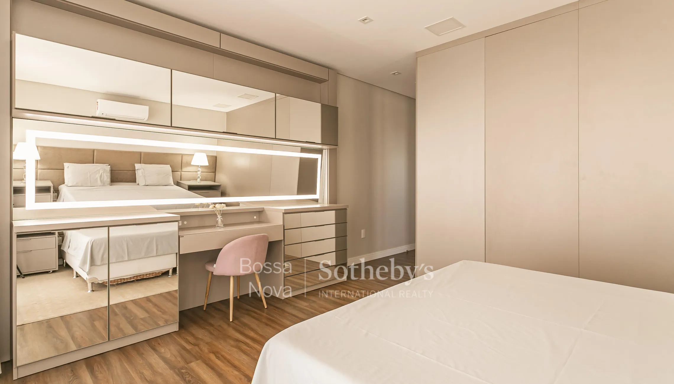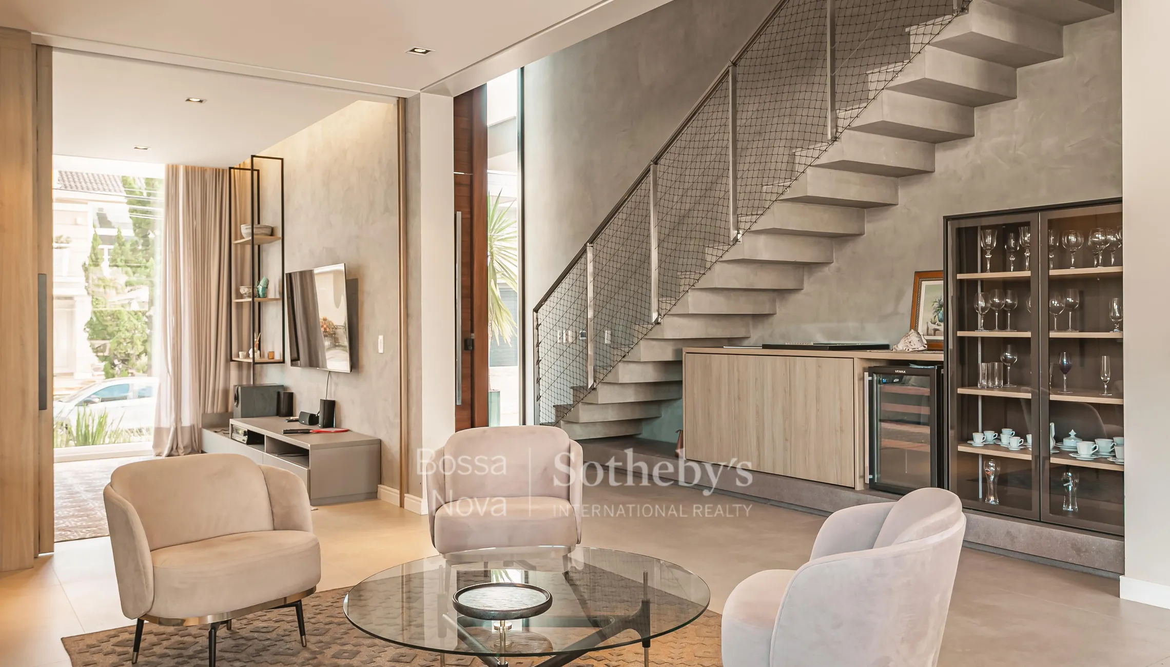 Em projeto de arquitetura contemporânea, esta casa mobiliada reúne ambientes bem distribuídos e integração entre os espaços sociais. No pavimento térreo, conta com sala de TV, lavabo, estar e jantar com lareira, jardim de inverno e cozinha aberta, que se conecta à varanda com deck, piscina e espaço gourmet com churrasqueira a carvão. A área íntima dispõe de quatro suítes, sendo duas voltadas para a fachada com sacada, incluindo a suíte principal com closet e banheira. A área externa oferece acesso direto à alameda e banheiro de apoio. A casa possui pé-direito duplo, sistema de câmeras e climatização em todos os ambientes.