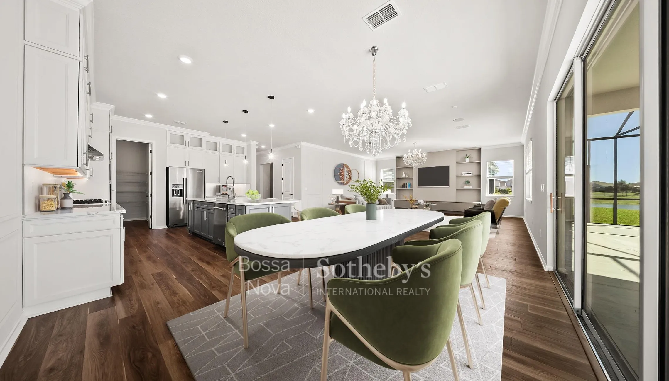 Localizada em cul-de-sac dentro do condomínio fechado Isles of Lake Nona, esta residência oferece cinco dormitórios e três banheiros e meio, além de acabamentos atualizados. A área social integra living iluminado, sancas de gesso e sistema de som ambiente. A cozinha apresenta projeto funcional com cooktop a gás natural, eletrodomésticos em aço inox, armários até o teto, backsplash em mosaico espinha de peixe e forno e micro-ondas embutidos. A área externa reúne piscina, spa, cozinha de apoio e varanda coberta com vista para a água. A suíte principal garante privacidade e inclui vista para o lago e banheiro com composição inspirada em linhas contemporâneas.