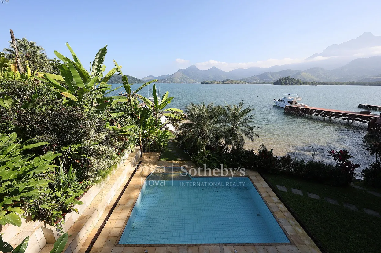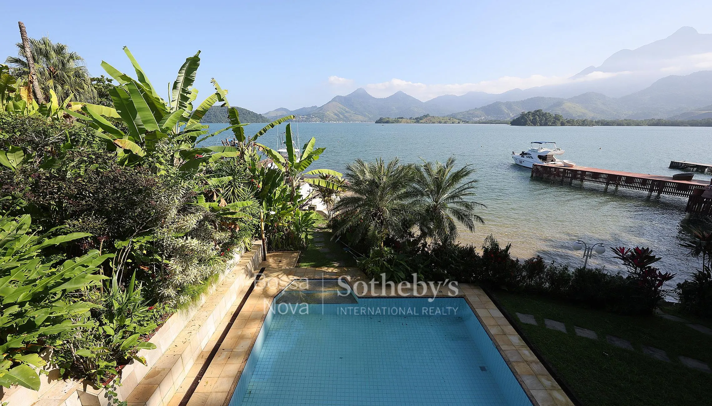 Casa triplex em condomínio próximo a Bracuí, com segurança, frente para o mar e praia privativa. No térreo, a casa possui um living para dois ambientes com acesso à varanda e vista deslumbrante, sala de jantar, salão de jogos, cozinha e dependência completa. No andar superior, a área íntima é composta pela suíte máster com closet, amplo banheiro e vista para o mar, além de quatro suítes, três das quais com vista para o mar. A área de lazer dispõe de varanda gourmet com churrasqueira, academia, sauna a vapor, lavabo, jardim, piscina, lounge no deck, heliponto e praia.