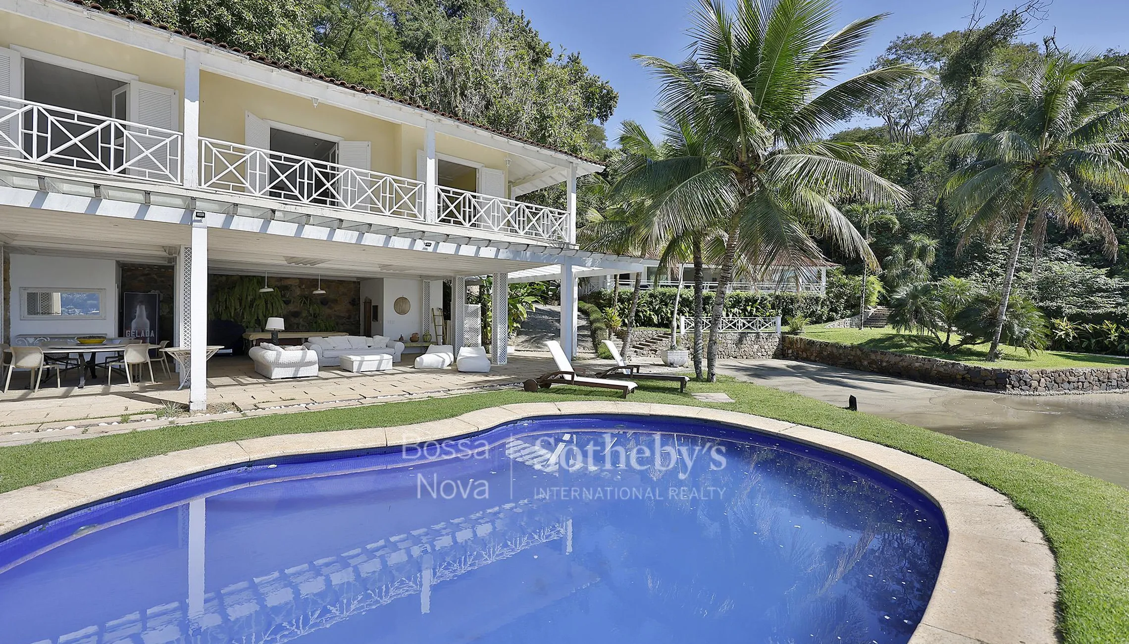 Casa pé na areia cercada por verde com praia de águas calmas e quentes. A propriedade tem três edificações. A casa principal dispõe de varanda com vista para o mar, living para três ambientes, sala de jantar, sala de TV, lavabo, suíte master, cozinha e área de serviço. Outra construção conta com lounge, piscina, churrasqueira, sauna, banheiro e ducha no térreo, enquanto no segundo andar há mais quatro suítes. Na terceira casa encontra-se, no andar superior, outras duas suítes, e no andar inferior há a residência do caseiro, além de lavanderia e guarderia de barcos. A propriedade dispõe de gerador e reservatório de água de 30 mil litros.