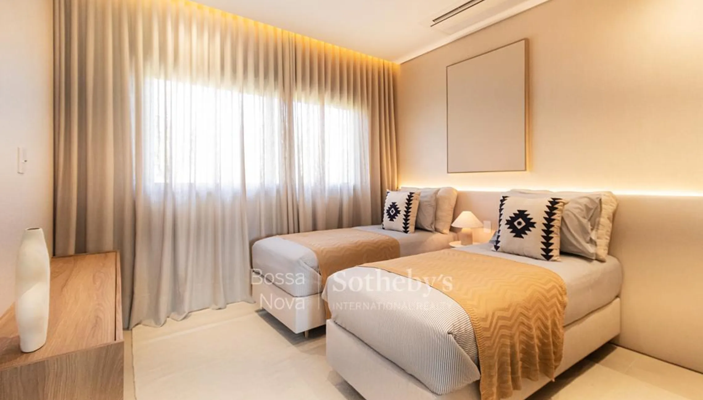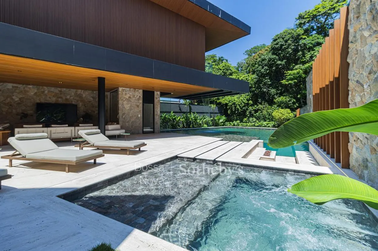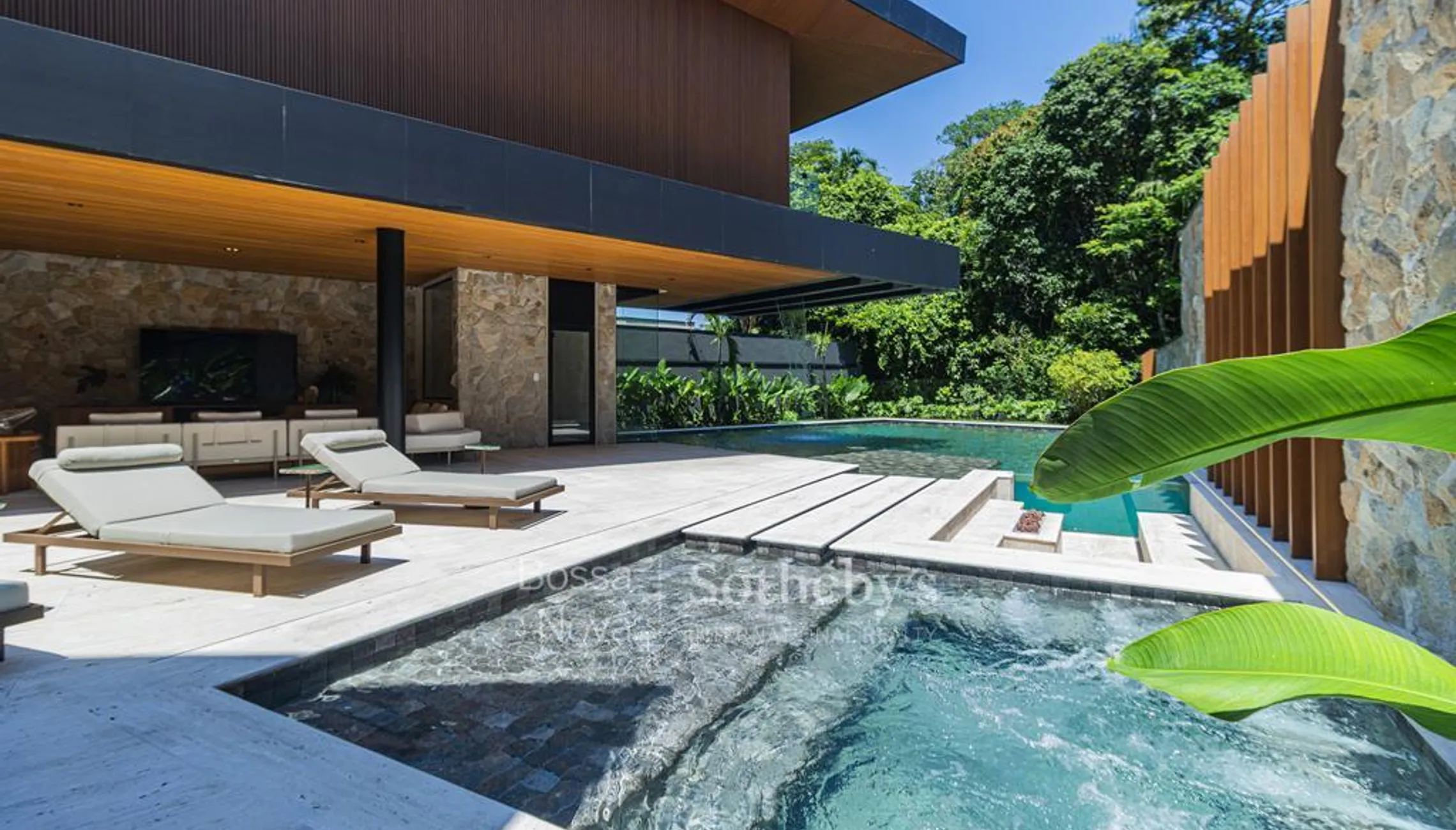 Localizada próxima ao campo de golfe da Riviera, esta residência contemporânea reúne conforto, tecnologia e integração entre os ambientes. O projeto valoriza amplitude e iluminação natural, com living composto por três espaços integrados, lavabo, elevador, escada com design contemporâneo e adega climatizada. A área externa contempla varanda gourmet, piscina aquecida com hidromassagem e sauna, além de um solarium voltado para o jardim. No pavimento superior, encontram-se o home theater e oito suítes, sendo a principal com closet e banheiro espaçosos. A propriedade dispõe ainda de área de serviço funcional e garagem com capacidade para 24 veículos, oferecendo praticidade e conveniência em um ambiente de lazer e privacidade.