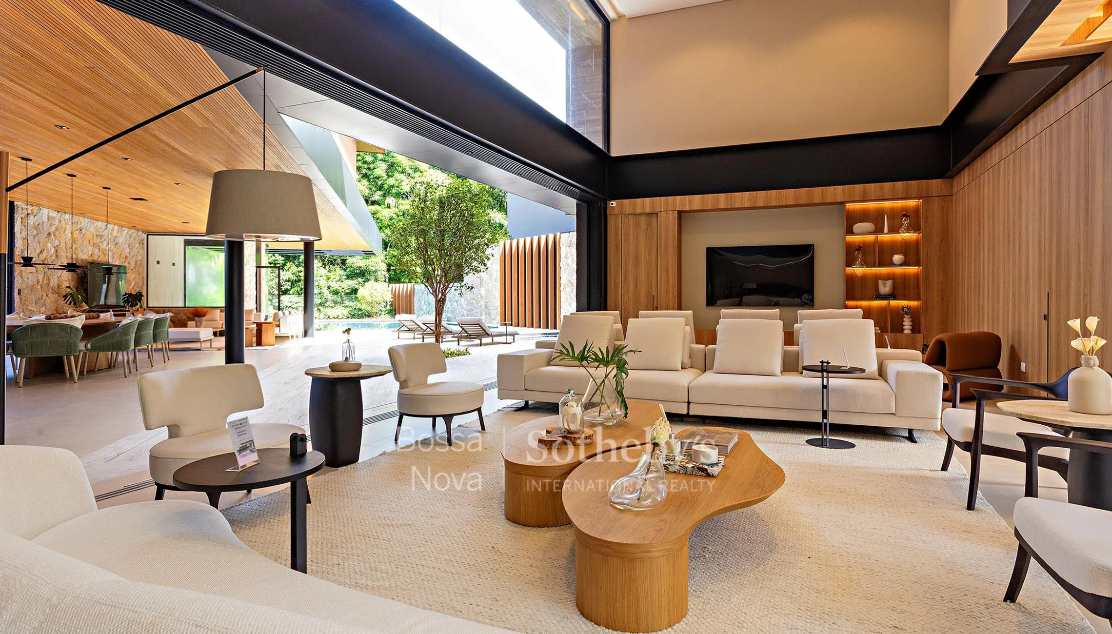 Localizada próxima ao campo de golfe da Riviera, esta residência contemporânea combina conforto, tecnologia e integração entre os ambientes. O projeto valoriza amplitude e iluminação natural, com um living composto por três espaços integrados, lavabo, elevador, escada de design contemporâneo e adega climatizada em inox para 180 garrafas. A área externa contempla varanda gourmet, piscina aquecida com hidromassagem, sauna e solarium voltado para o jardim, criando um ambiente ideal para momentos de lazer e convivência. No pavimento superior estão o home theater e sete suítes, sendo a principal com closet e banheiro amplos. Os acabamentos em mármore Travertino Romano e o sistema de automação completo — que controla iluminação, som, cortinas e climatização — reforçam o conforto e a sofisticação do projeto. Totalmente decorada e mobiliada, a casa conta com marcenaria Bontempo e eletrodomésticos Elettromec, garantindo funcionalidade e elegância em cada detalhe. Dispõe ainda de área de serviço funcional, suíte para funcionários e garagem com capacidade para seis veículos cobertos e dezesseis vagas externas.