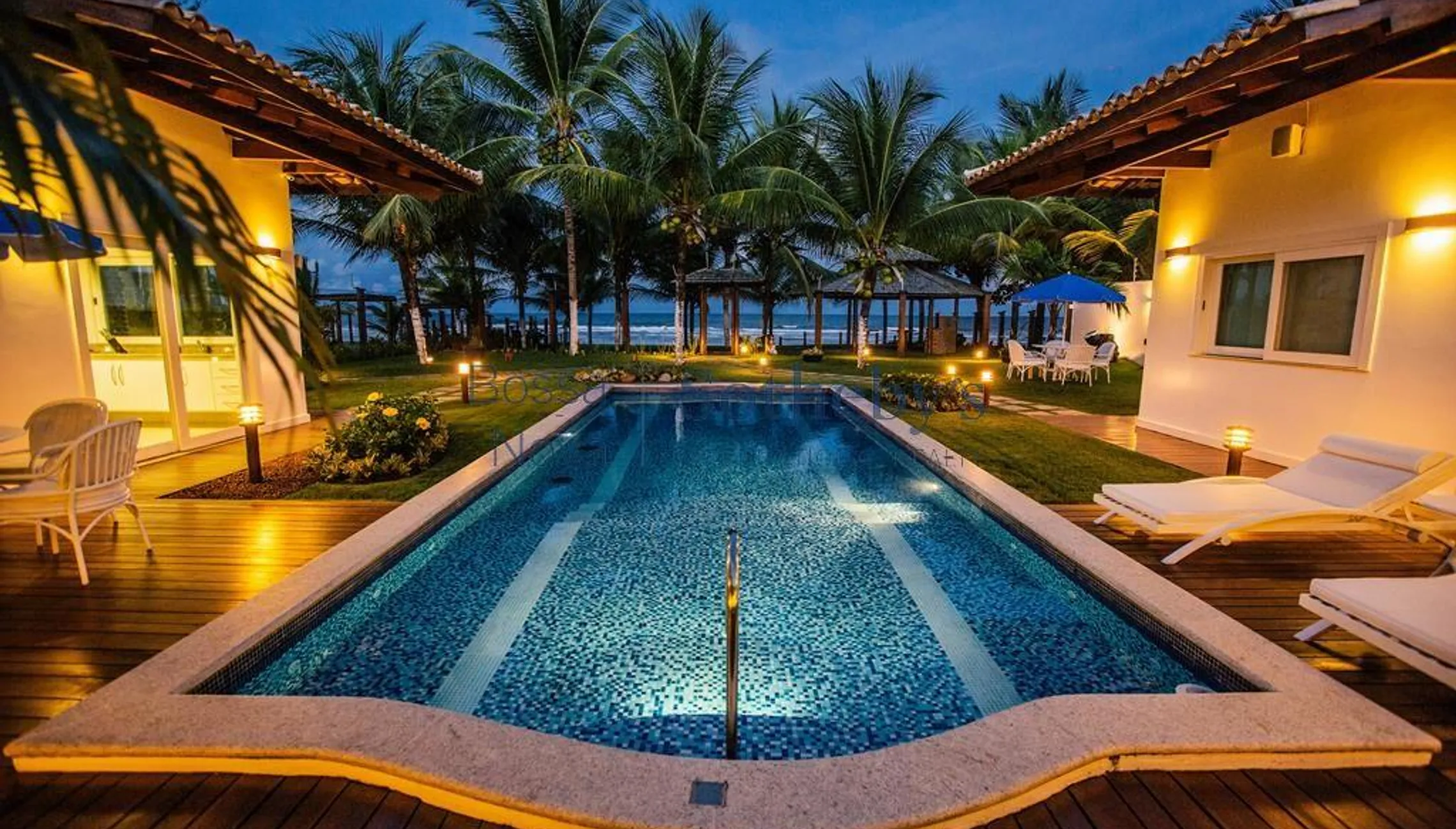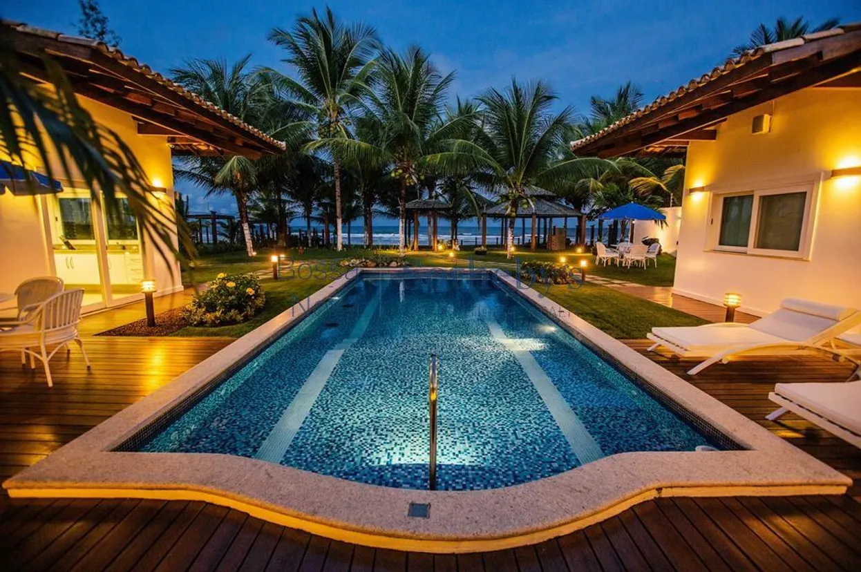 Casa residencial à venda em Águas de Olivença, no município de Ilhéus, localizada em área litorânea do sul da Bahia, a aproximadamente 10 quilômetros do Aeroporto de Ilhéus, com acesso pela rodovia Ilhéus–Olivença, km 10. A propriedade possui cerca de 600 m² de área construída em um terreno de aproximadamente 2.000 m², implantada em meio a coqueiros e vegetação típica da região. A residência dispõe de seis suítes, três salas — incluindo sala de estar com home theater — e cozinha ampla, com ar-condicionado instalado em todos os ambientes. A área externa conta com varanda de grandes proporções com bar de apoio, piscina com hidromassagem e integração com o jardim. O imóvel incorpora soluções voltadas à eficiência no uso de recursos, como sistemas de aquecimento solar e elétrico e captação de água da chuva. A propriedade dispõe ainda de quiosque privativo localizado em frente ao mar.