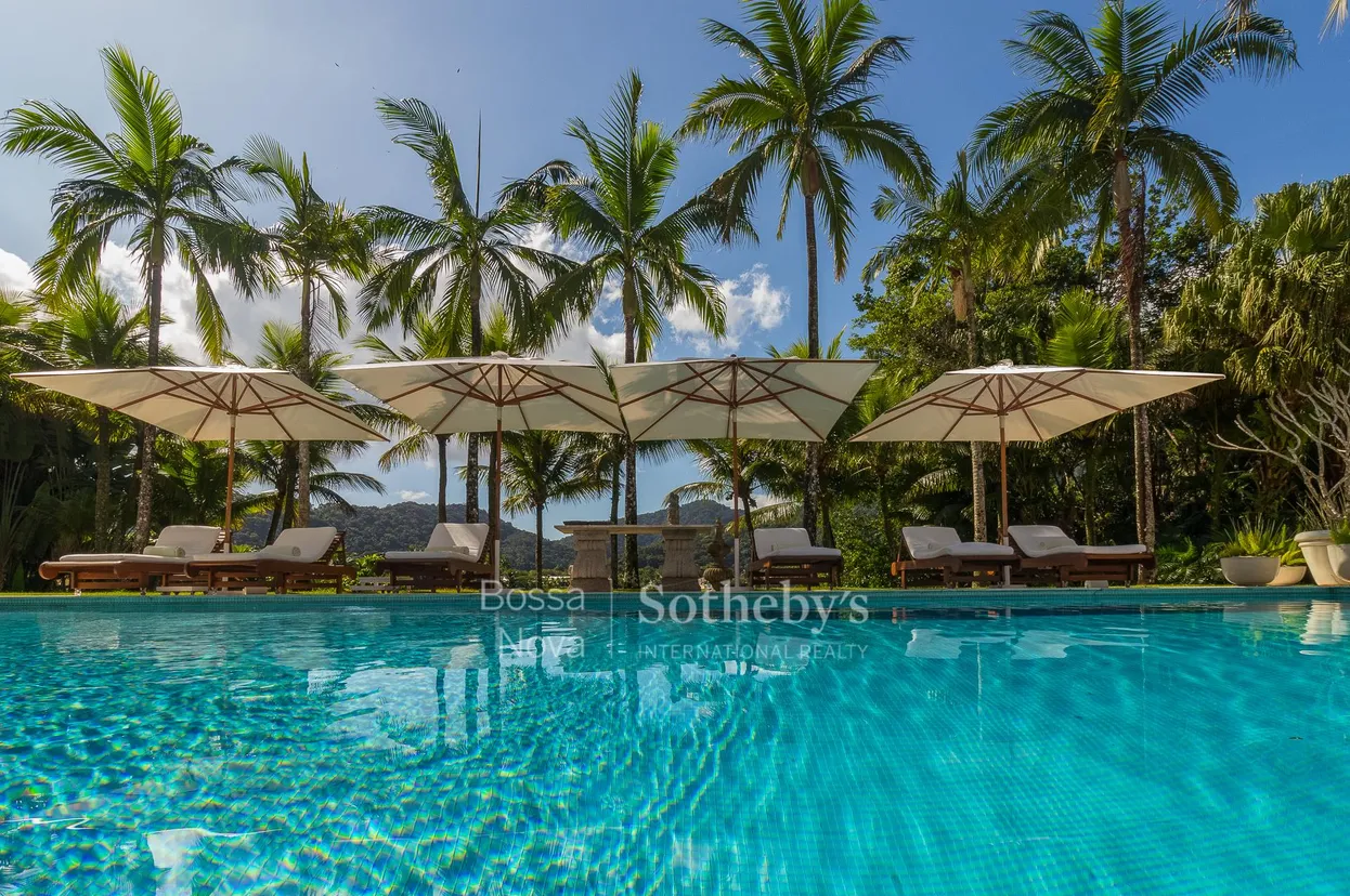 Casa sofisticada cercada por um exuberante jardim tropical, com um imponente hall de entrada que dá acesso a um living com três ambientes e sala de jantar integrada. A ampla varanda acolhe ambientes aconchegantes ao redor da piscina aquecida, jacuzzi, orquidário e um gazebo com área gourmet, ideal para receber convidados. O piso em mármore travertino na área social reforça a elegância do imóvel. Um jardim de coqueiros conduz ao canal, que conta com deck privativo para embarque e desembarque de embarcações. Na área íntima, a casa dispõe de dez suítes, incluindo uma master com closet e banheiros Sr. e Sra., além de hidromassagem. A sala de almoço conecta-se à espaçosa cozinha equipada com despensa, armários para armazenamento e câmara de congelamento e descongelamento. A área de serviço inclui lavanderia, quarto e banheiro de funcionário. A casa é completamente climatizada com ar-condicionado tipo split, inclusive na cozinha. O imóvel também conta com uma casa na vila destinada aos funcionários, oferecendo conforto e funcionalidade em cada detalhe.