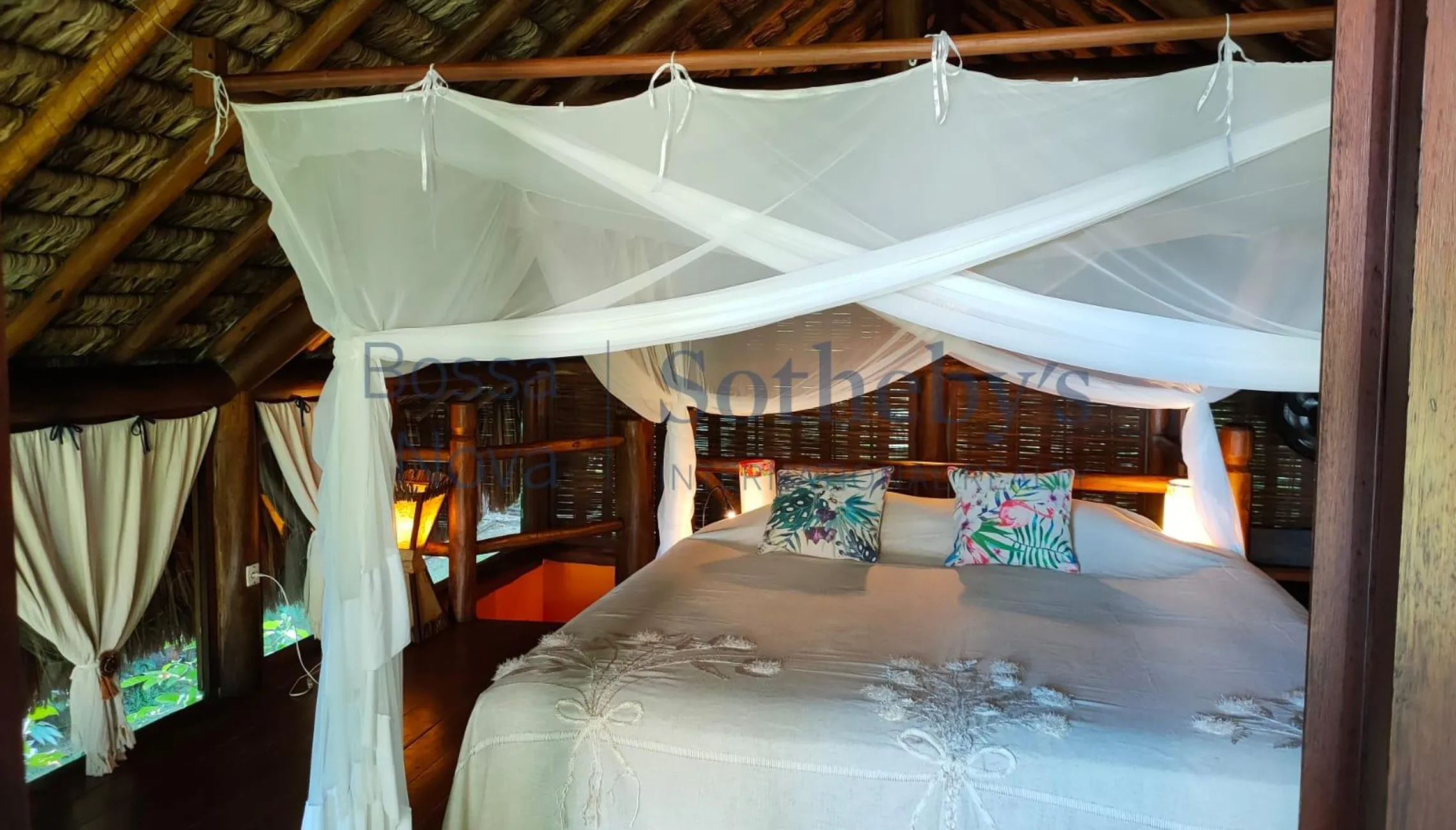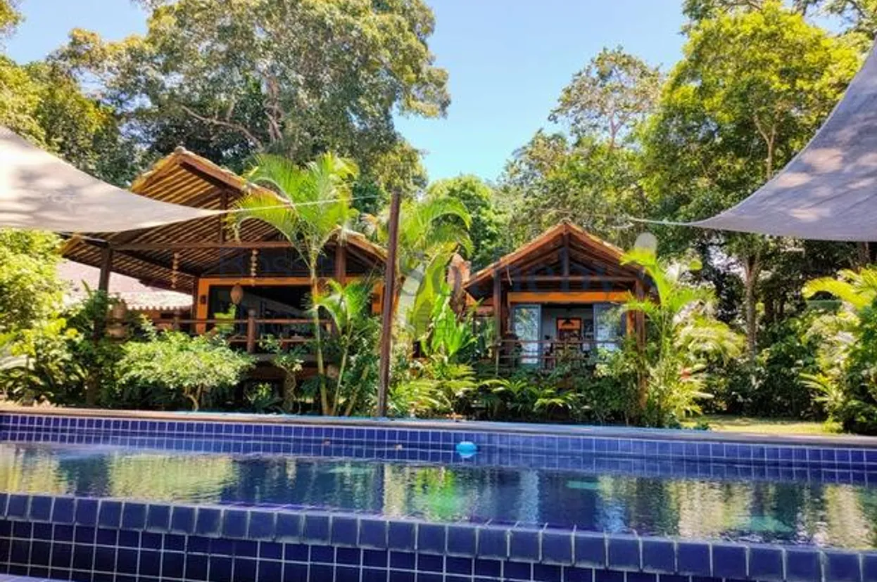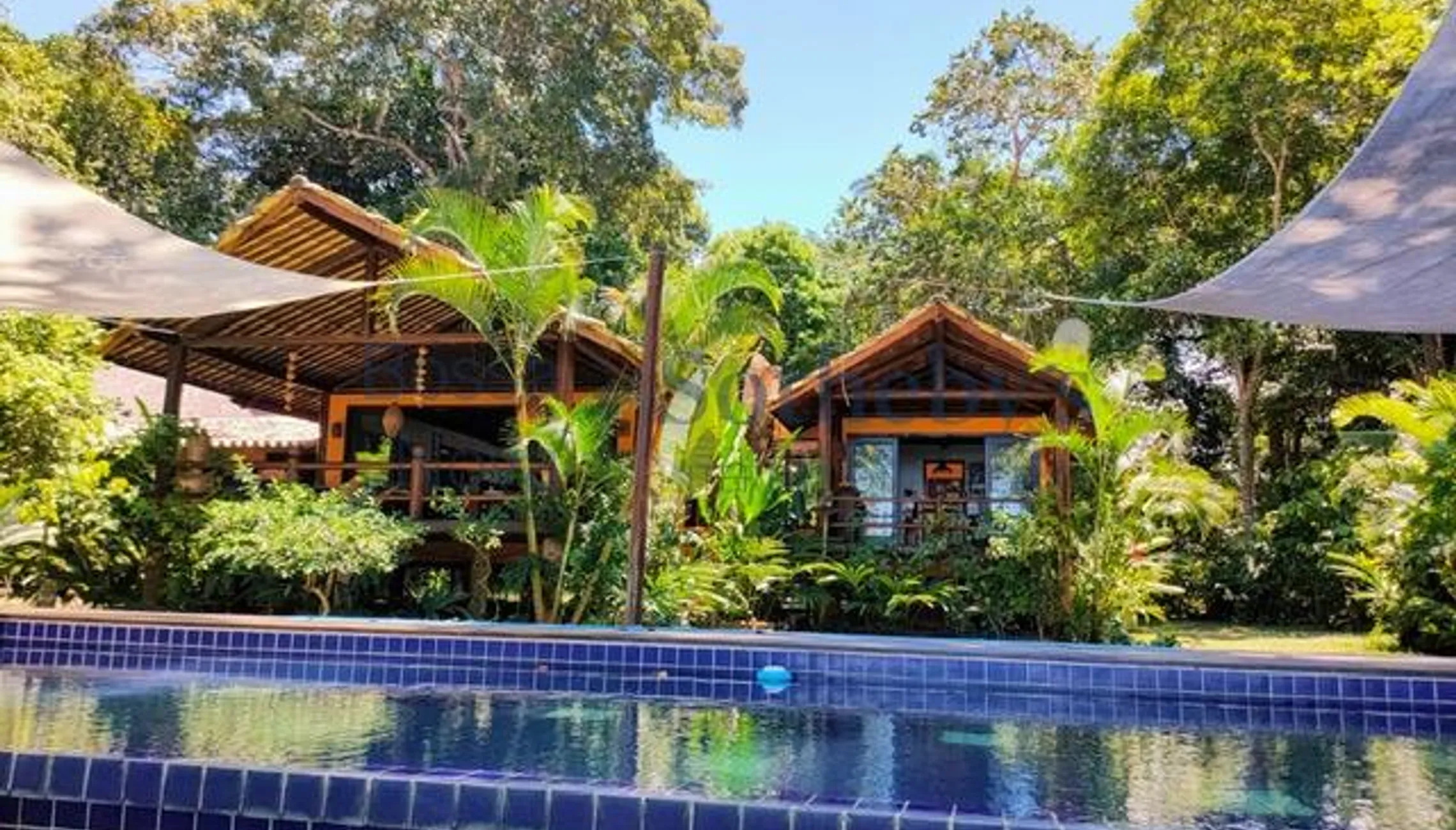 Sítio com área de aproximadamente 10.000 m², atualmente em operação como hospedagem, localizado em meio à Mata Atlântica, com jardim formado por árvores nativas e vista para o mar e para o Rio João de Tiba. A área construída soma cerca de 400 m² e inclui uma casa principal com cozinha, sala de jantar e varandas, além de piscina com borda infinita e residência de apoio para colaboradores. A propriedade conta ainda com dois bangalôs e uma suíte independente. O Bangalô da Jaqueira possui um pavimento com construção inspirada na arquitetura balinesa. A Suíte da Gameleira é distribuída em dois níveis, com área principal voltada para a paisagem e pavimento inferior com banheiro e varanda integrada ao jardim. Há também uma suíte com cobertura em formato piramidal, com dois ambientes e banheiro, complementando a distribuição dos espaços.