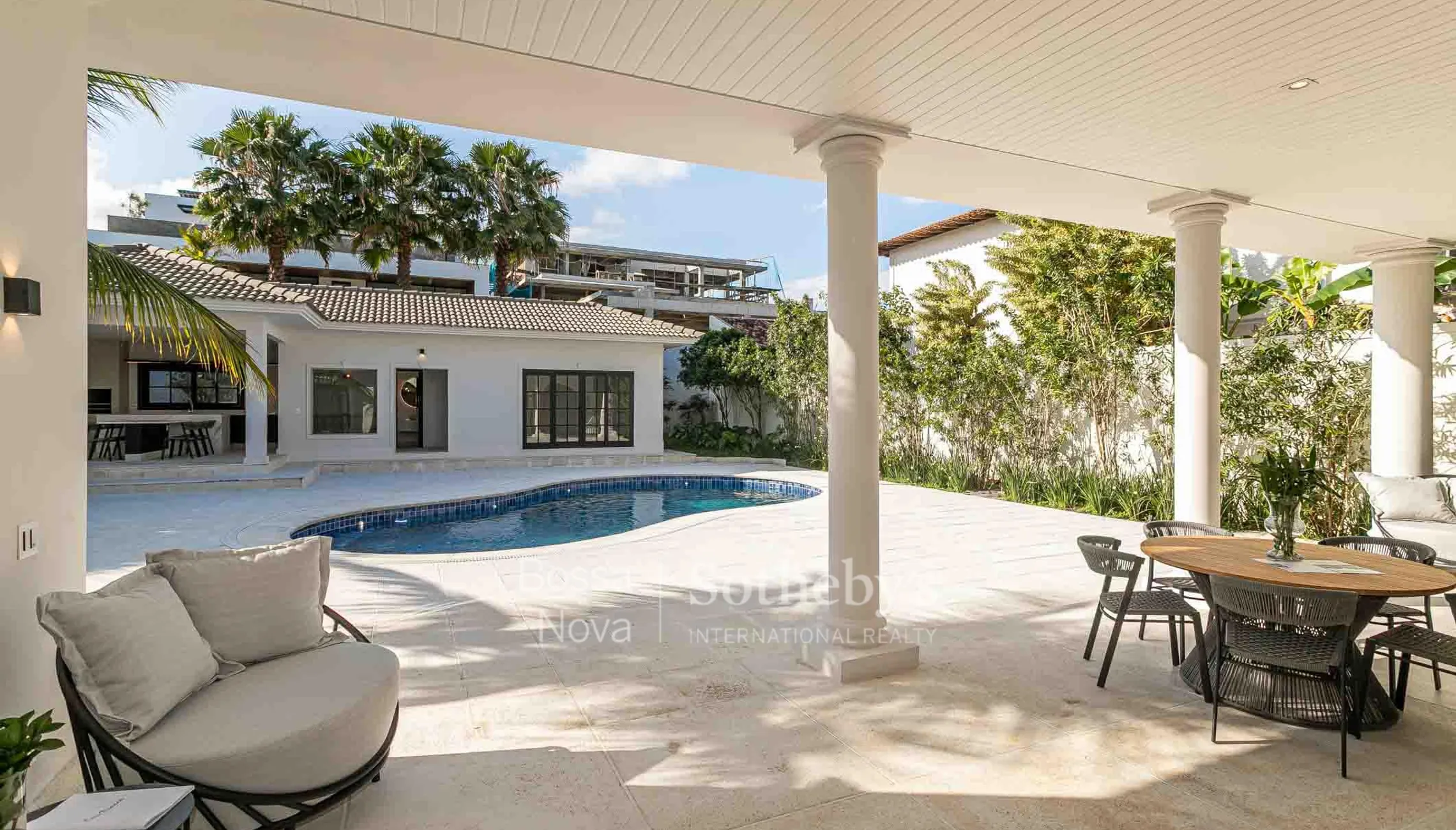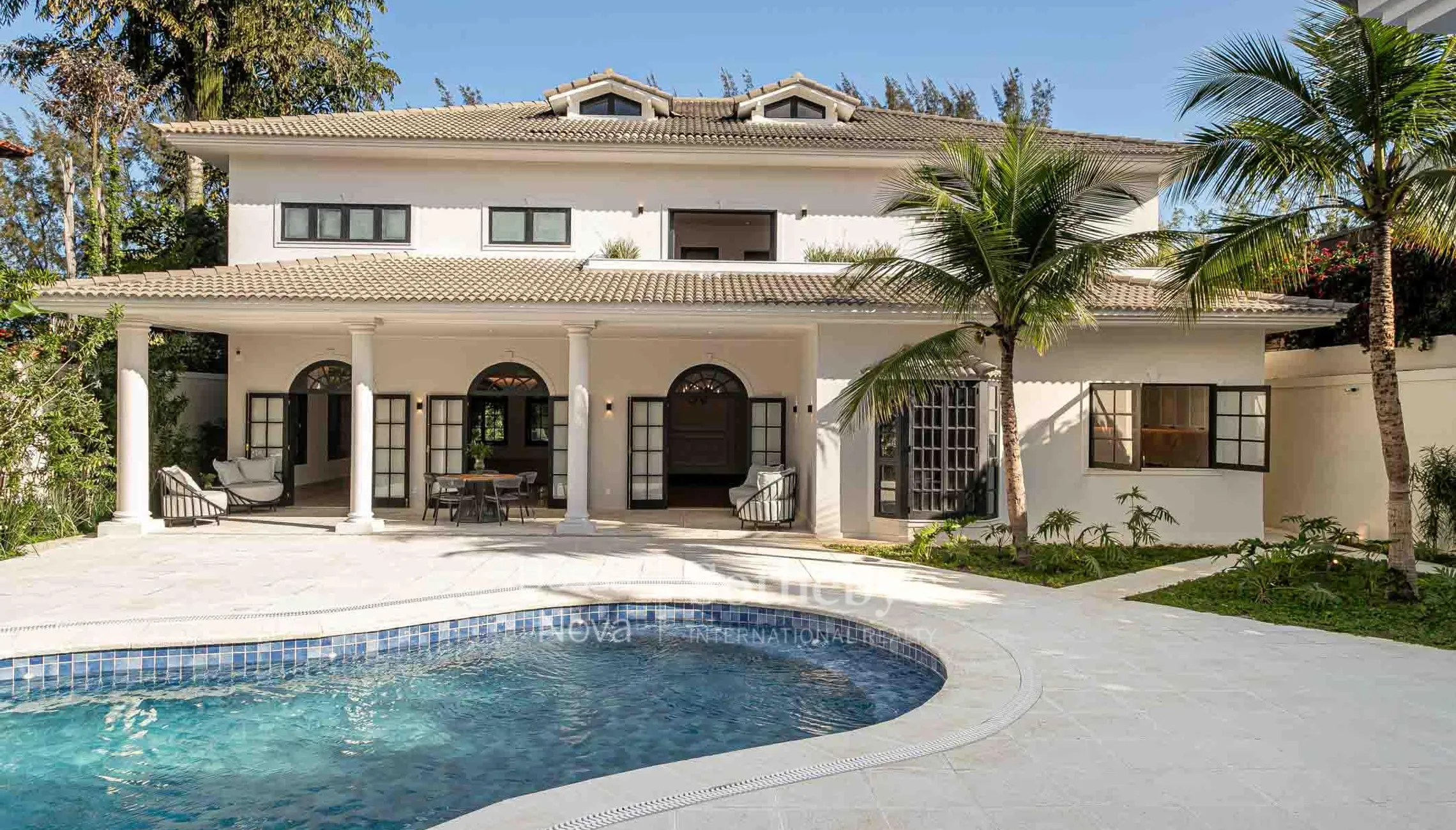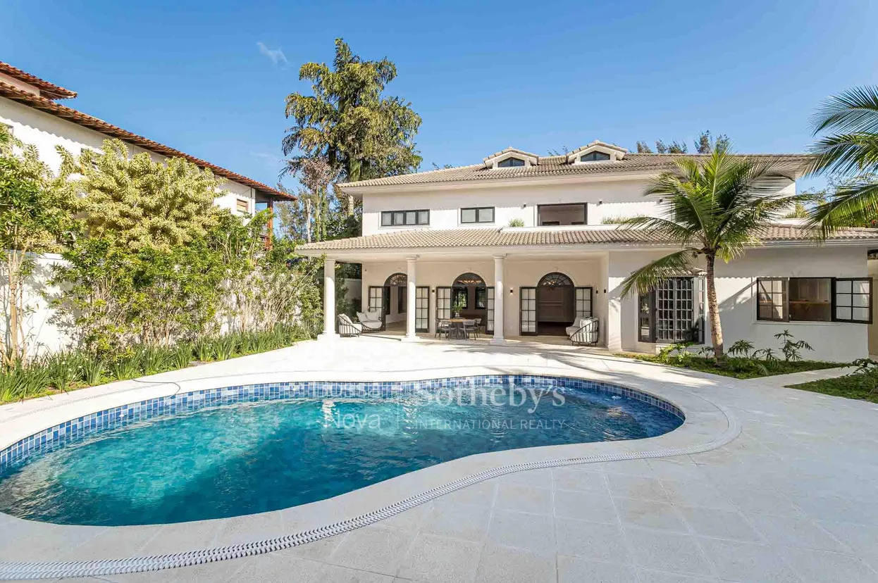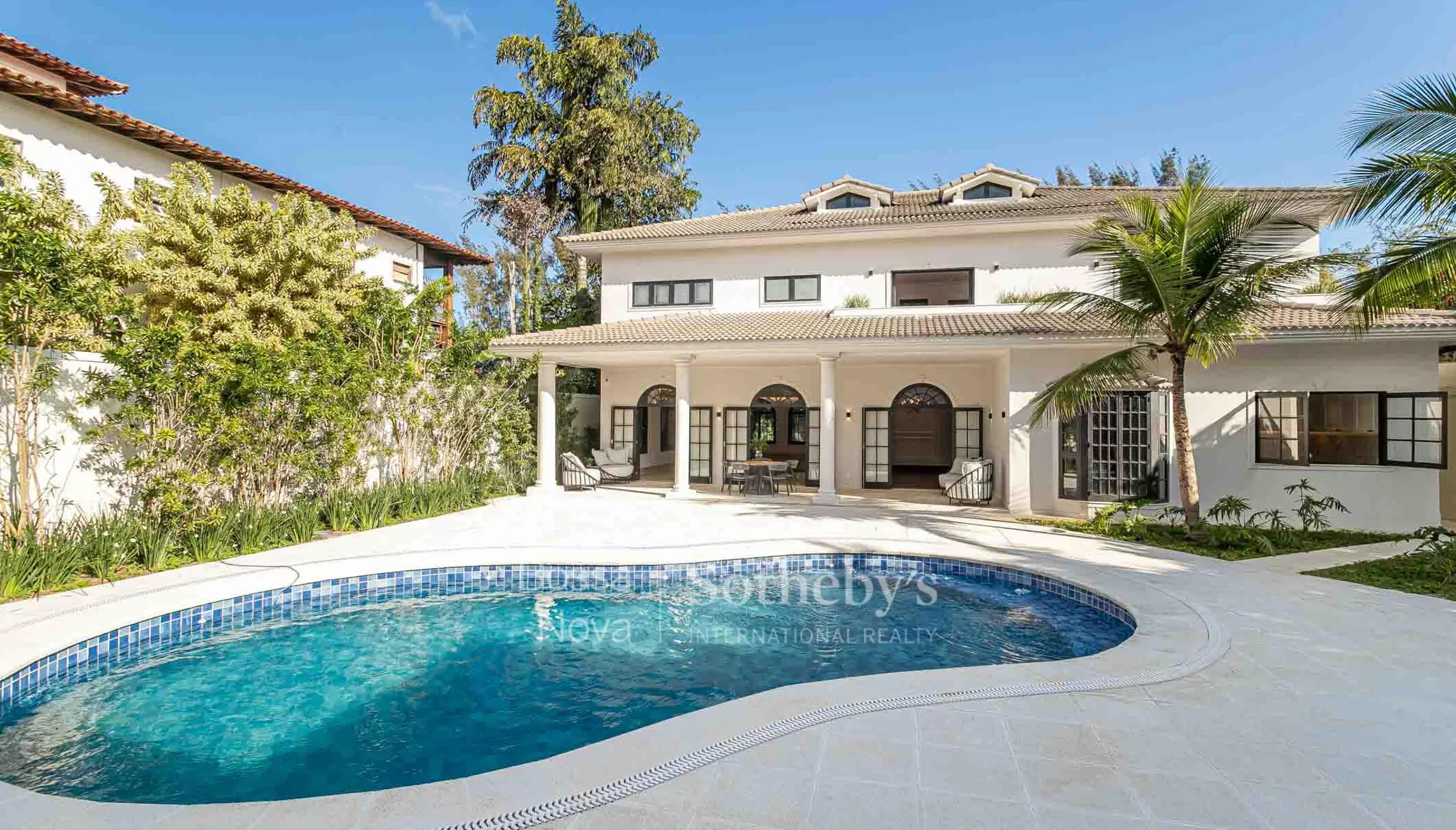 Casa reformada com lazer integrado e cinco suítes em estilo americano